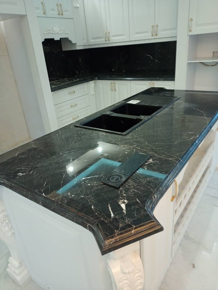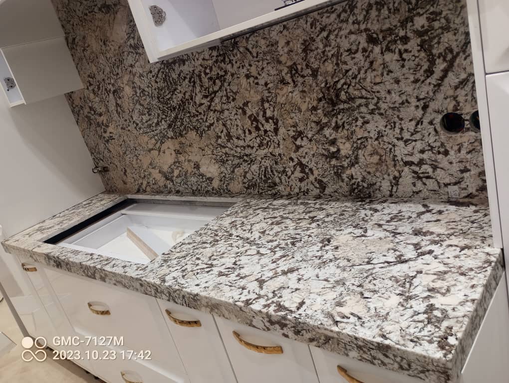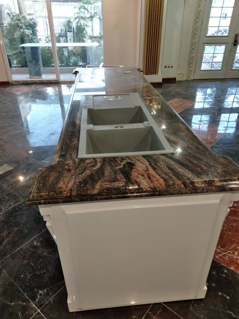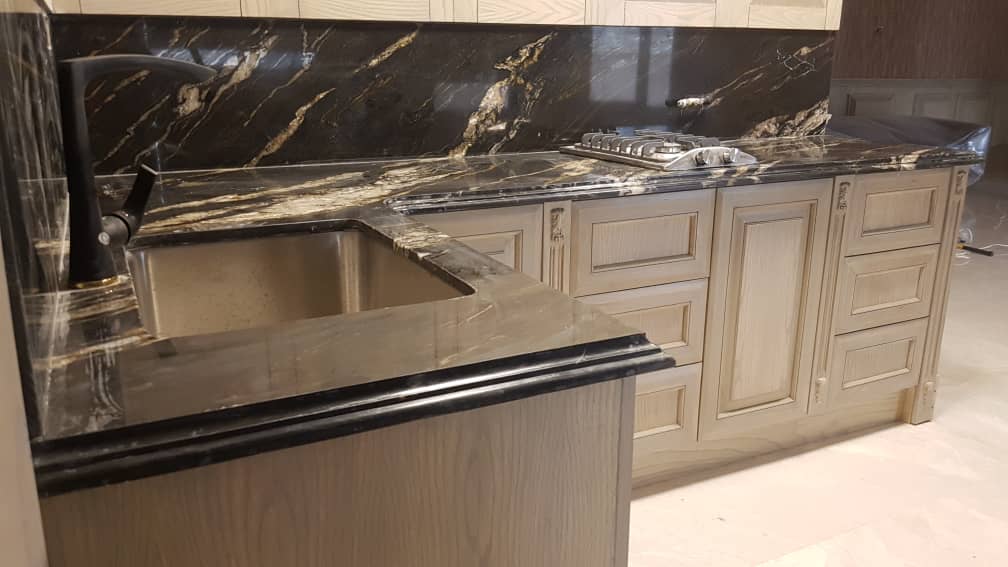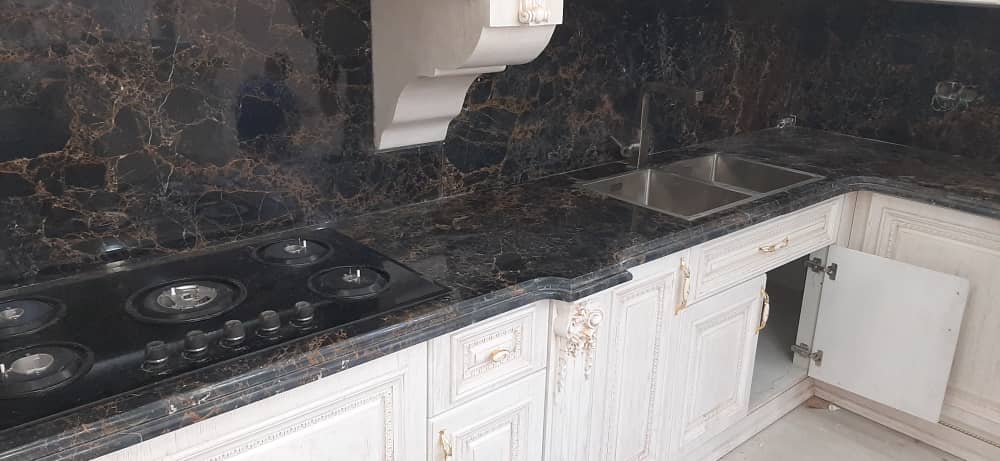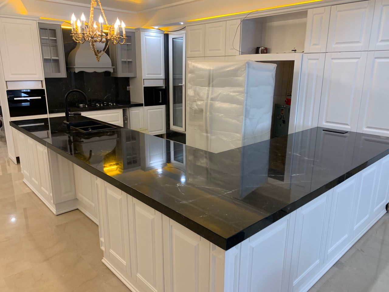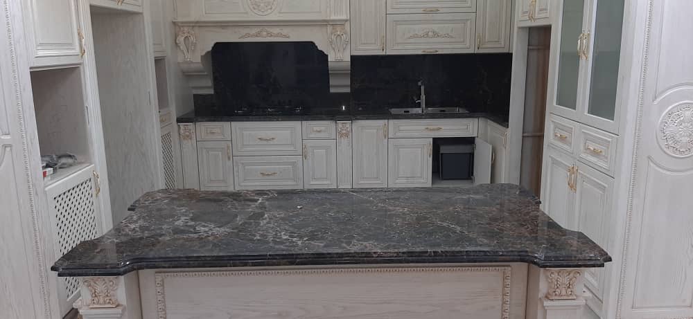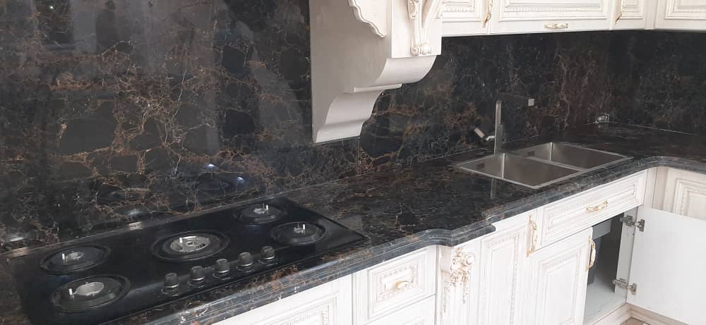 اجرا شده بصورت کلاسیک ضخامت ۴ سانت روی کانتر آشپزخانه مکان پروژه زعفرانیهزمان نصب آذر ۱۴۰۲