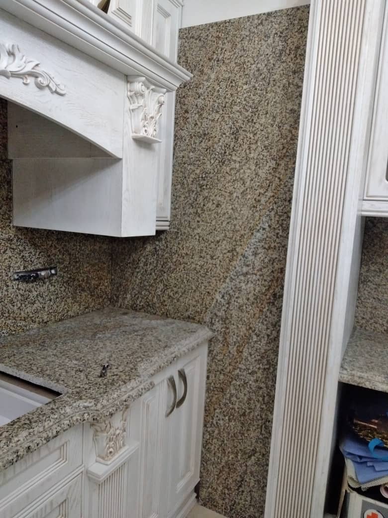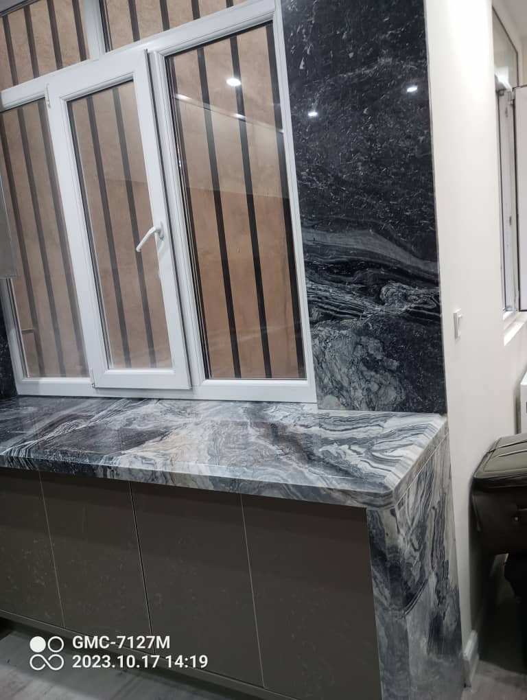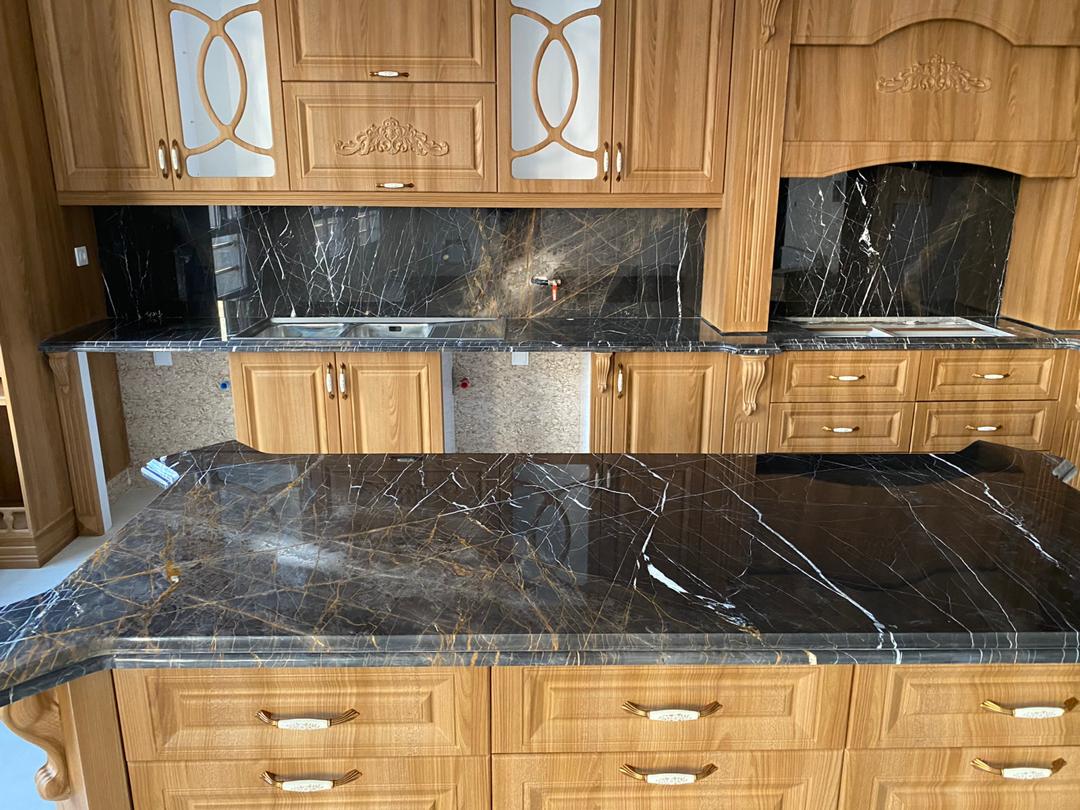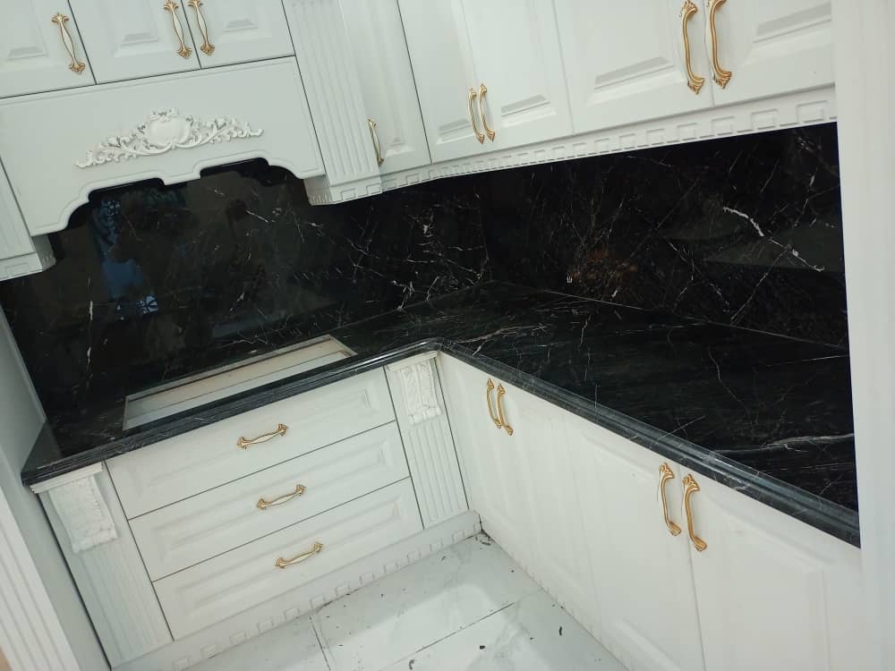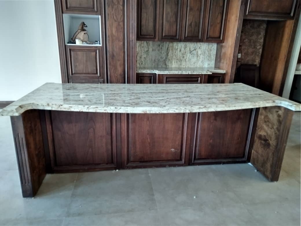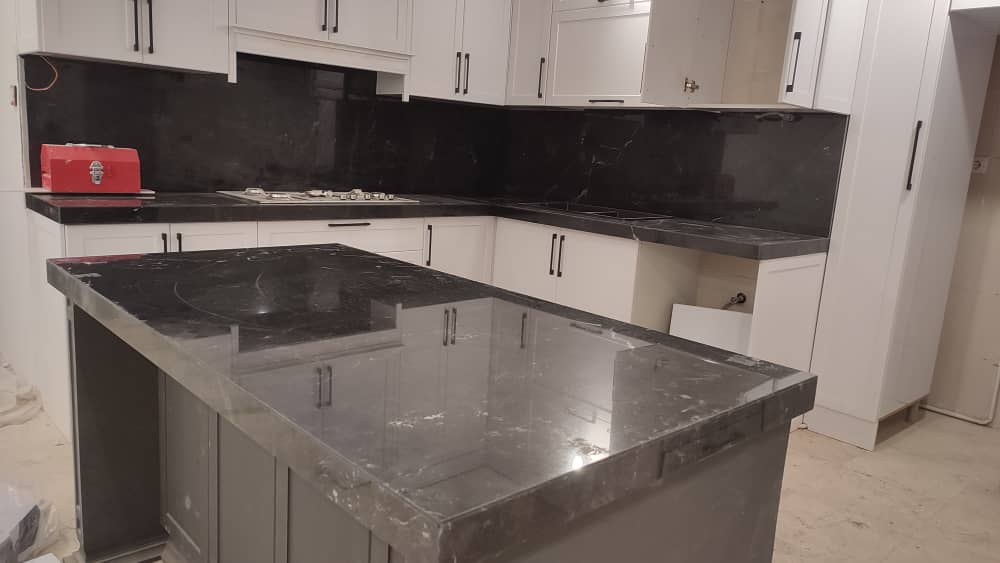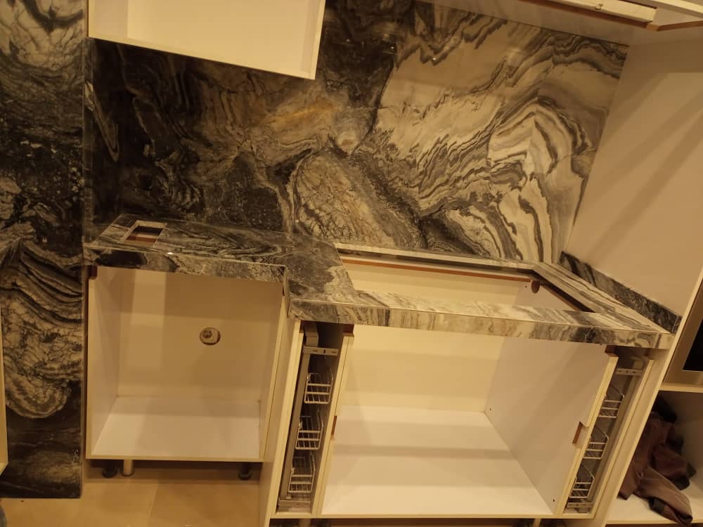 اجرا شده بصورت کلاسیک ضخامت ۴ سانت روی کانتر آشپزخانه مکان پروژه زعفرانیهزمان نصب آذر ۱۴۰۲