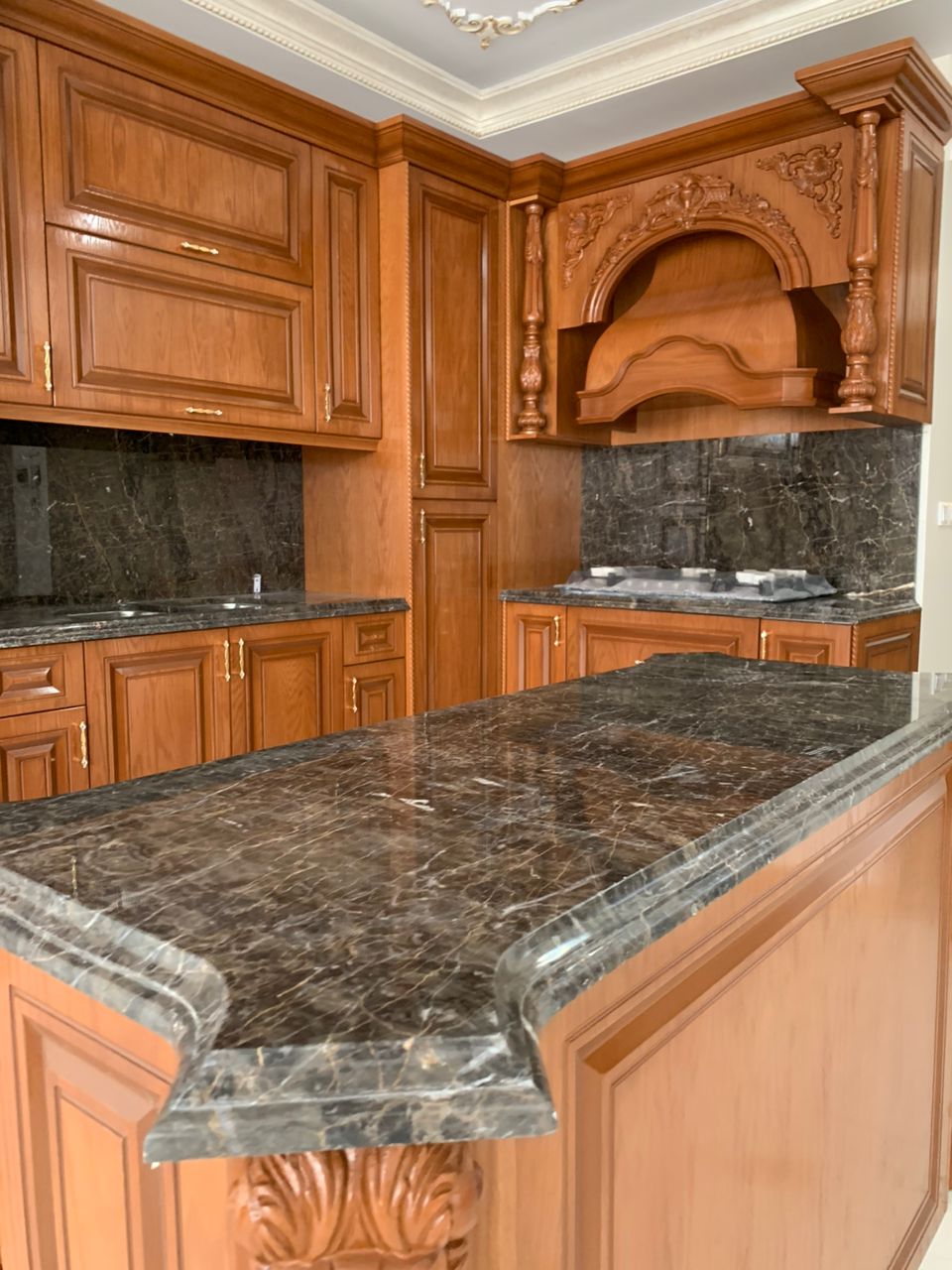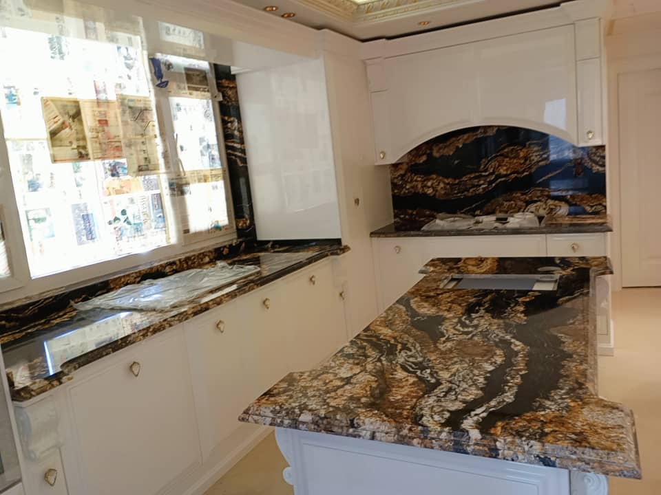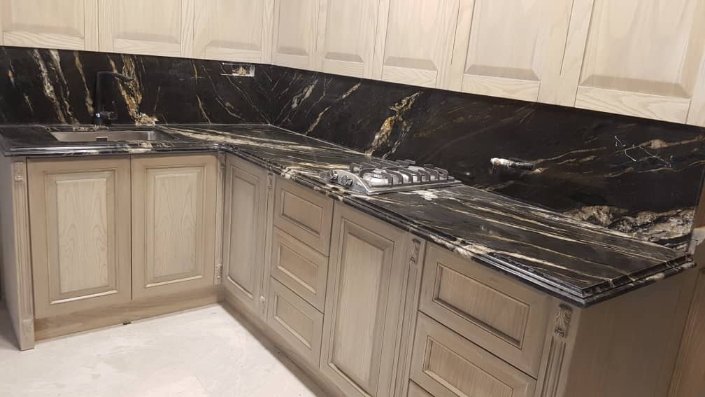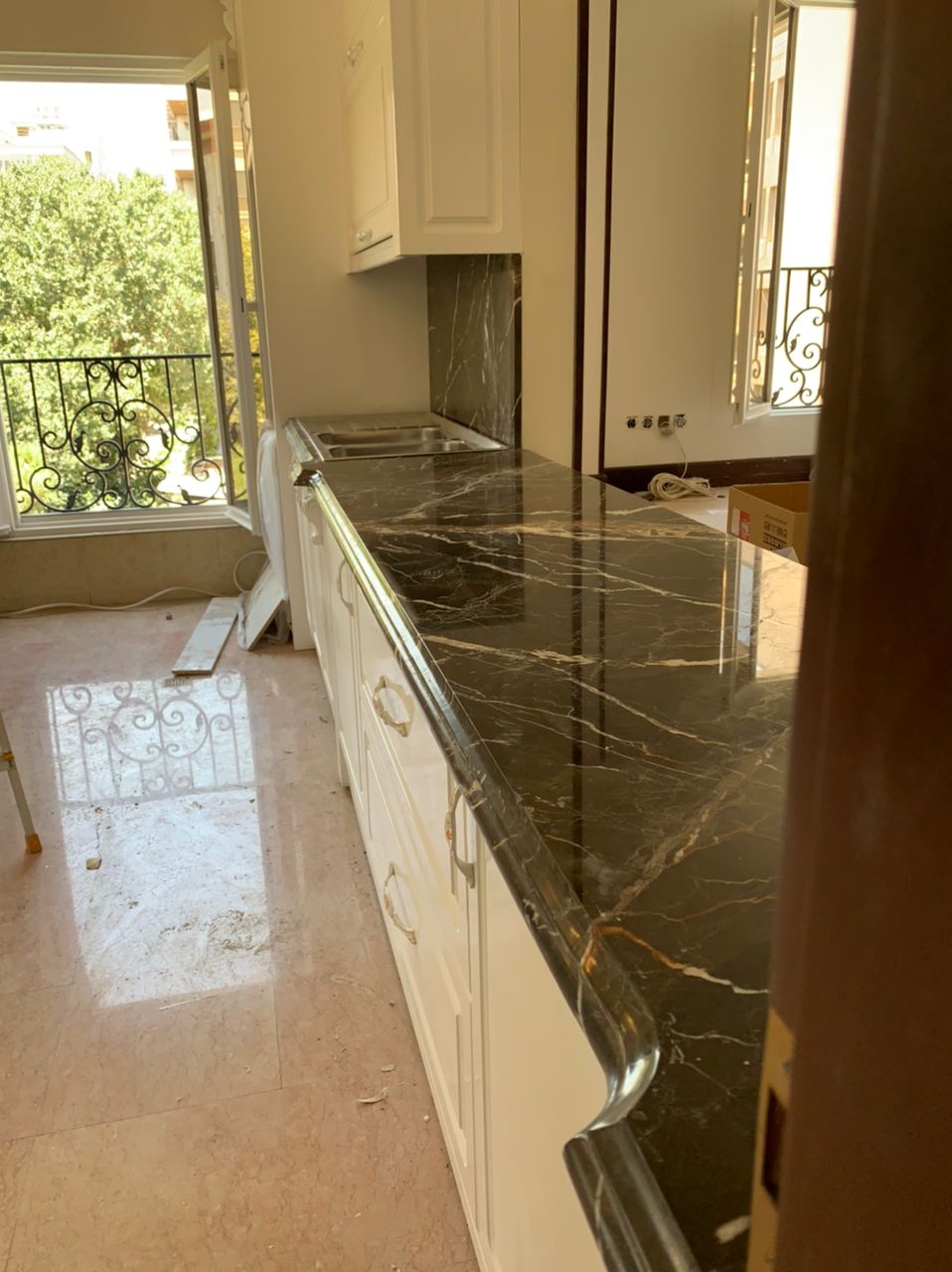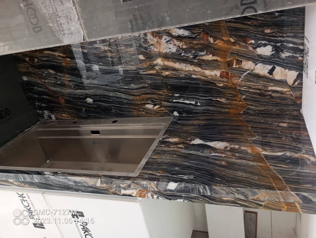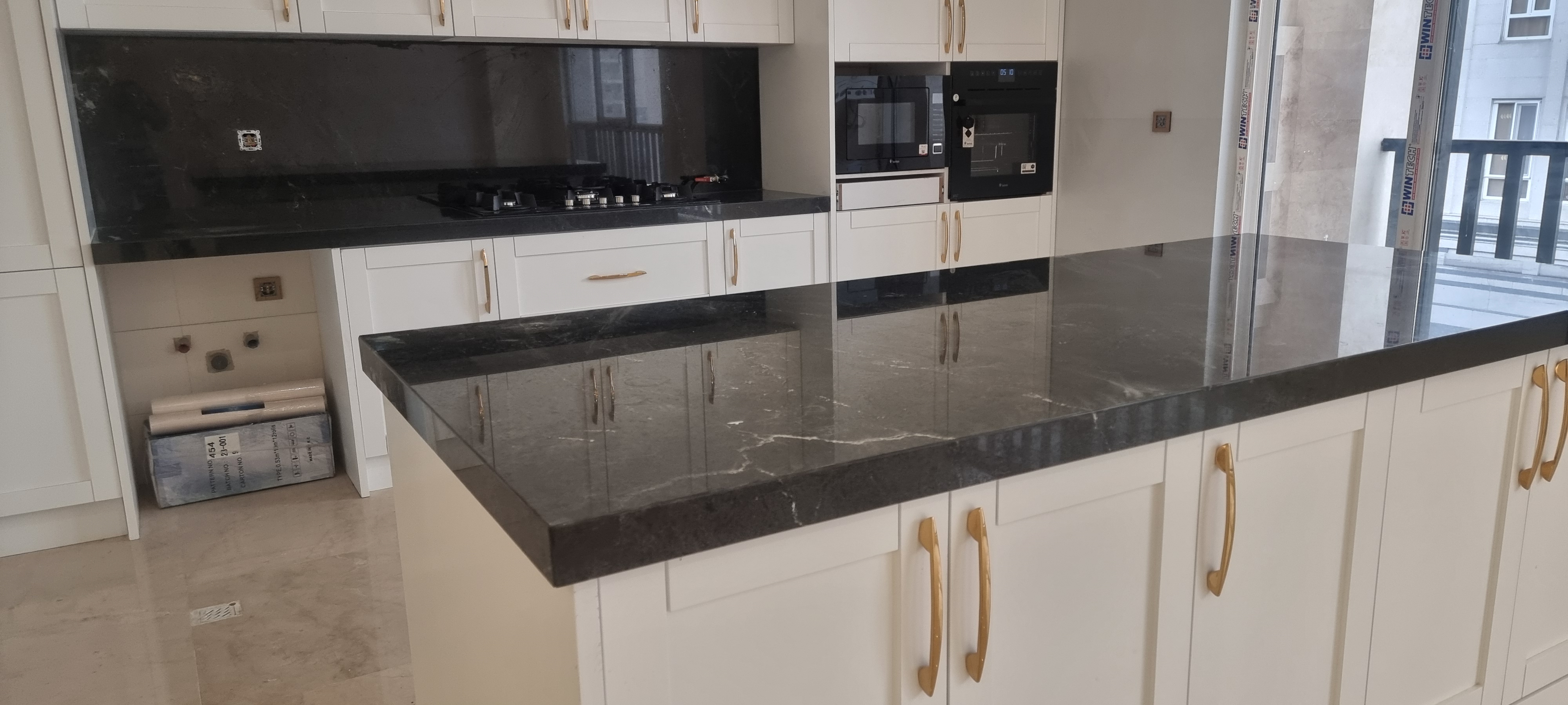 اجرا شده بصورت کلاسیک ضخامت ۴ سانت روی کانتر آشپزخانه مکان پروژه زعفرانیهزمان نصب آذر ۱۴۰۲