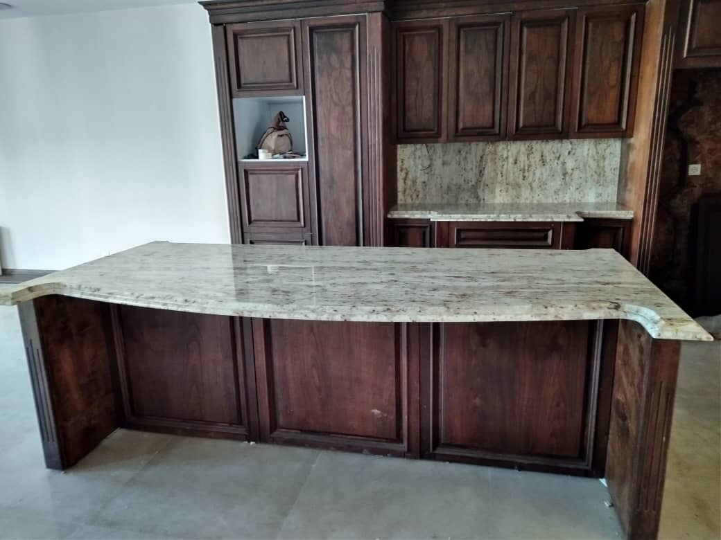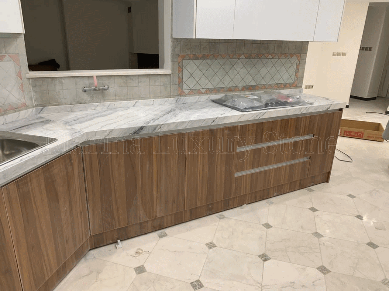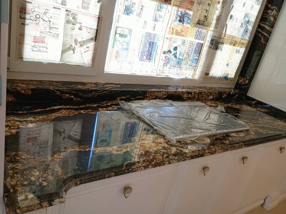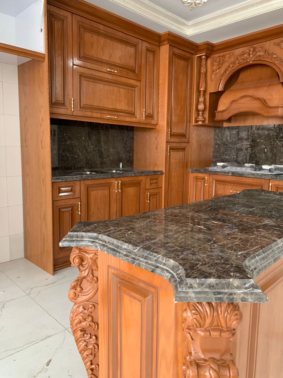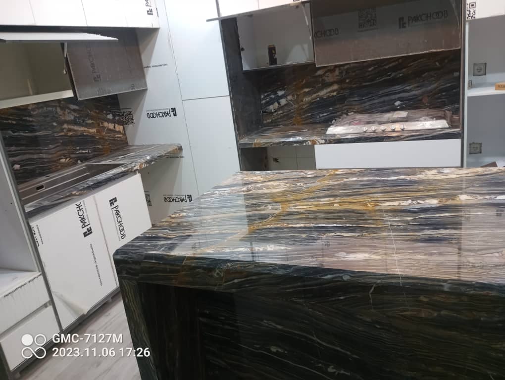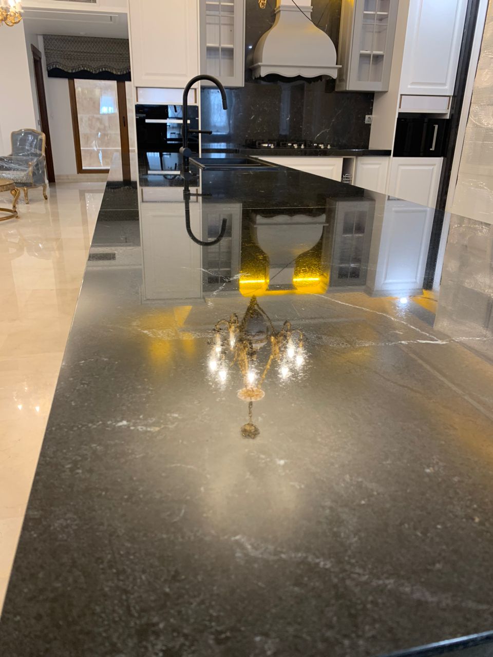 اجرا شده بصورت کلاسیک ضخامت ۴ سانت روی کانتر آشپزخانه مکان پروژه زعفرانیهزمان نصب آذر ۱۴۰۲