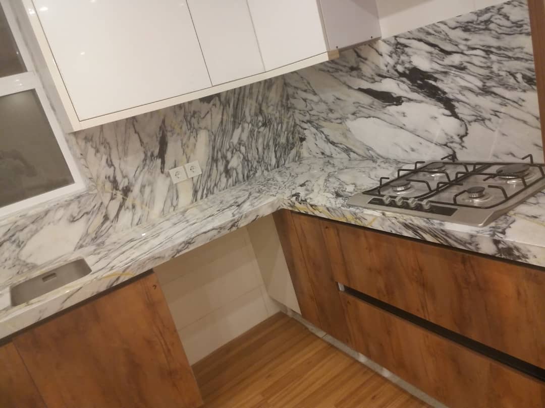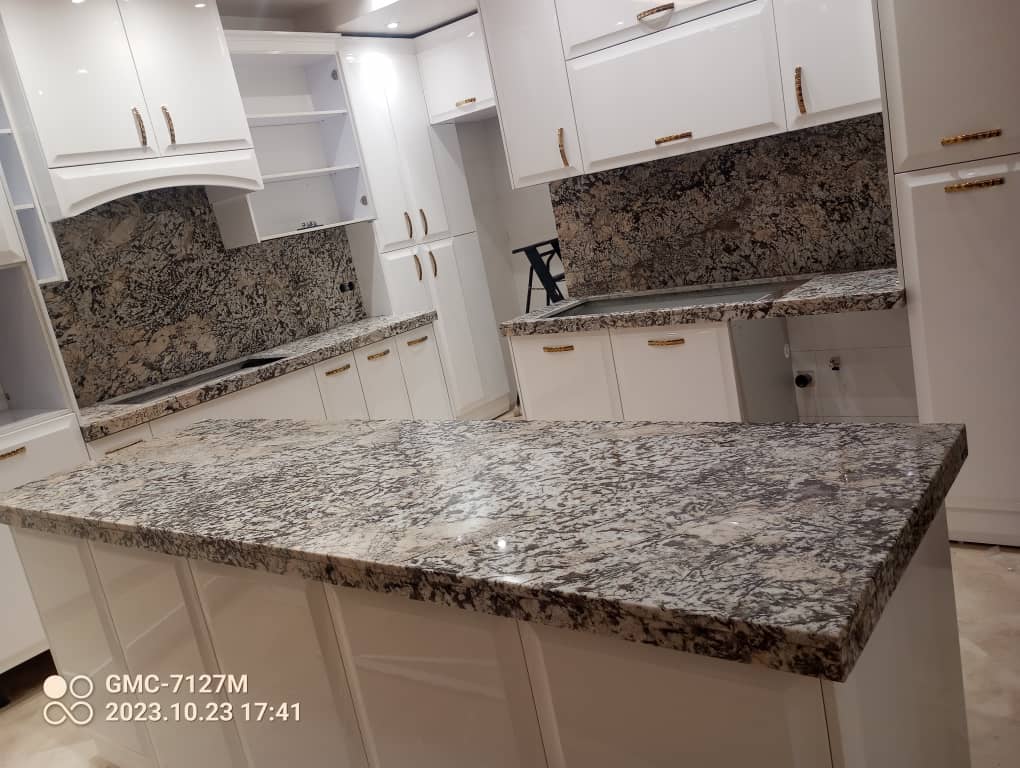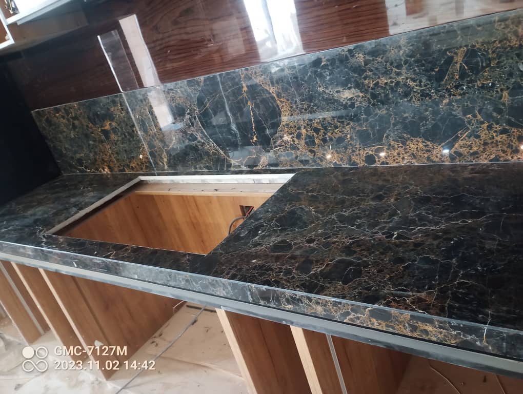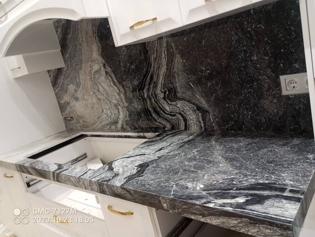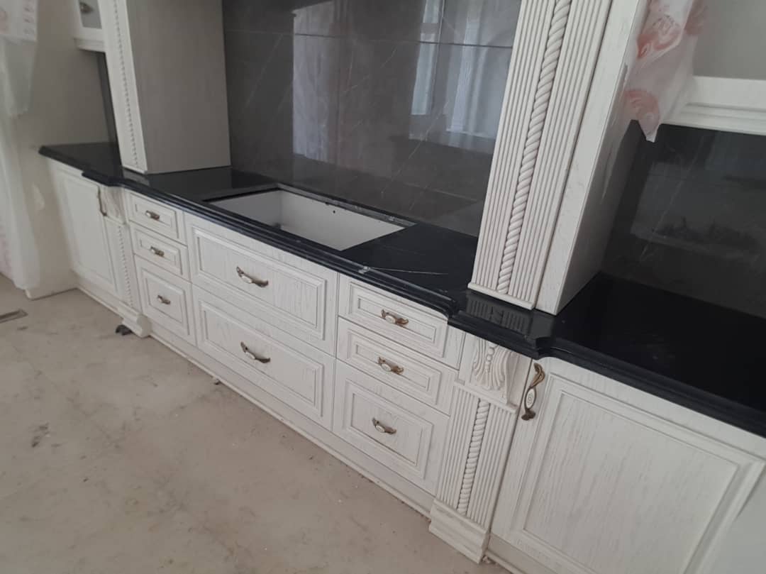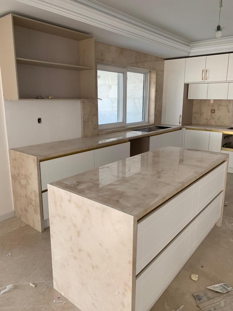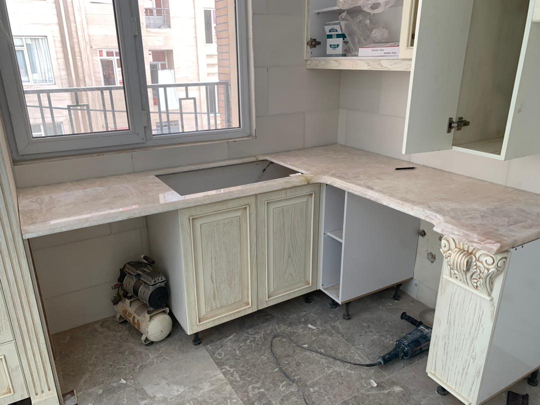 اجرا شده بصورت کلاسیک ضخامت ۴ سانت روی کانتر آشپزخانه مکان پروژه زعفرانیهزمان نصب آذر ۱۴۰۲