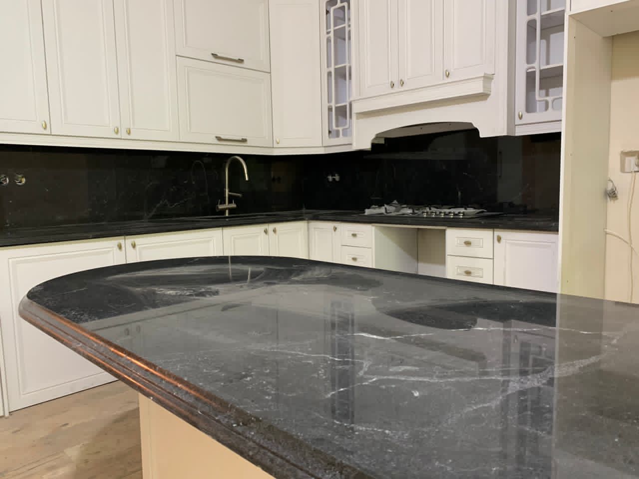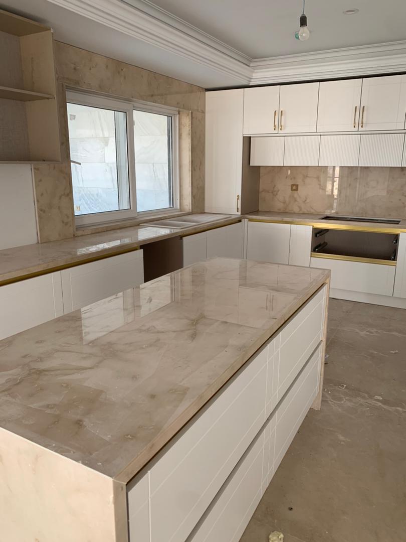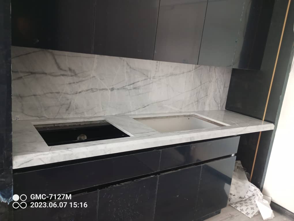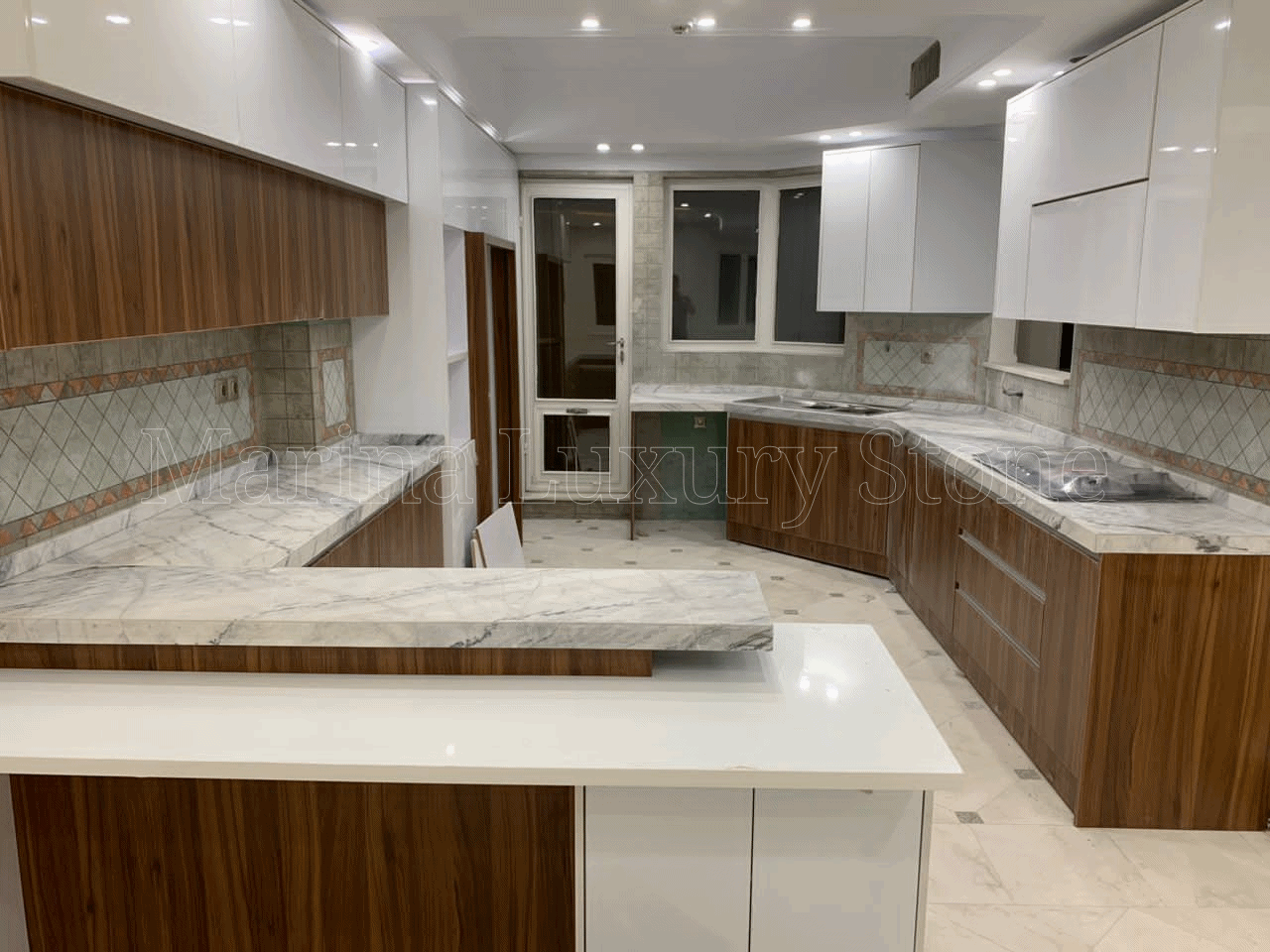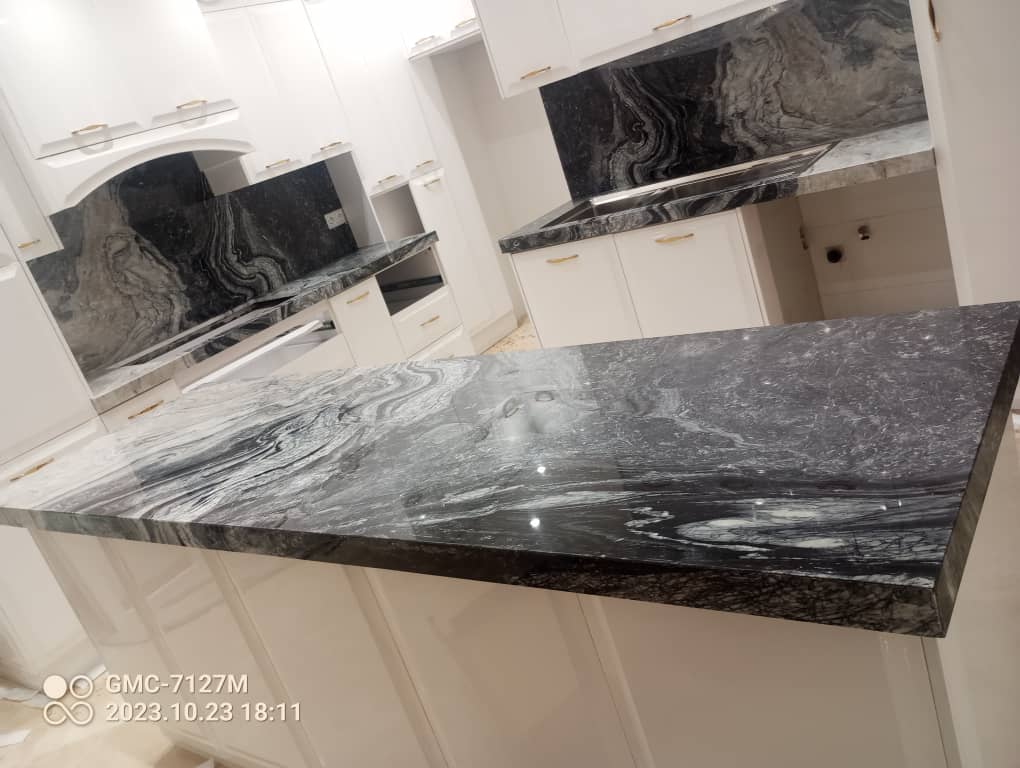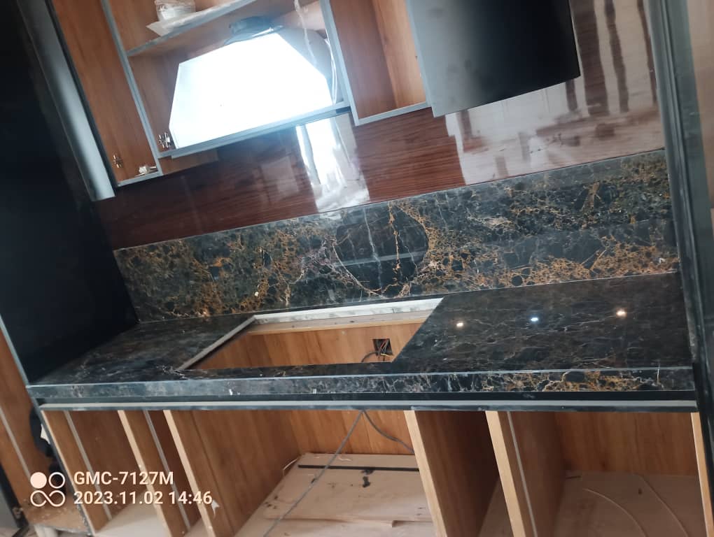 اجرا شده بصورت کلاسیک ضخامت ۴ سانت روی کانتر آشپزخانه مکان پروژه زعفرانیهزمان نصب آذر ۱۴۰۲