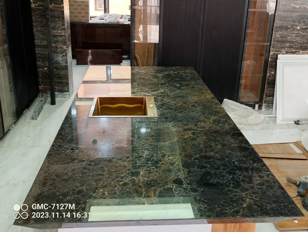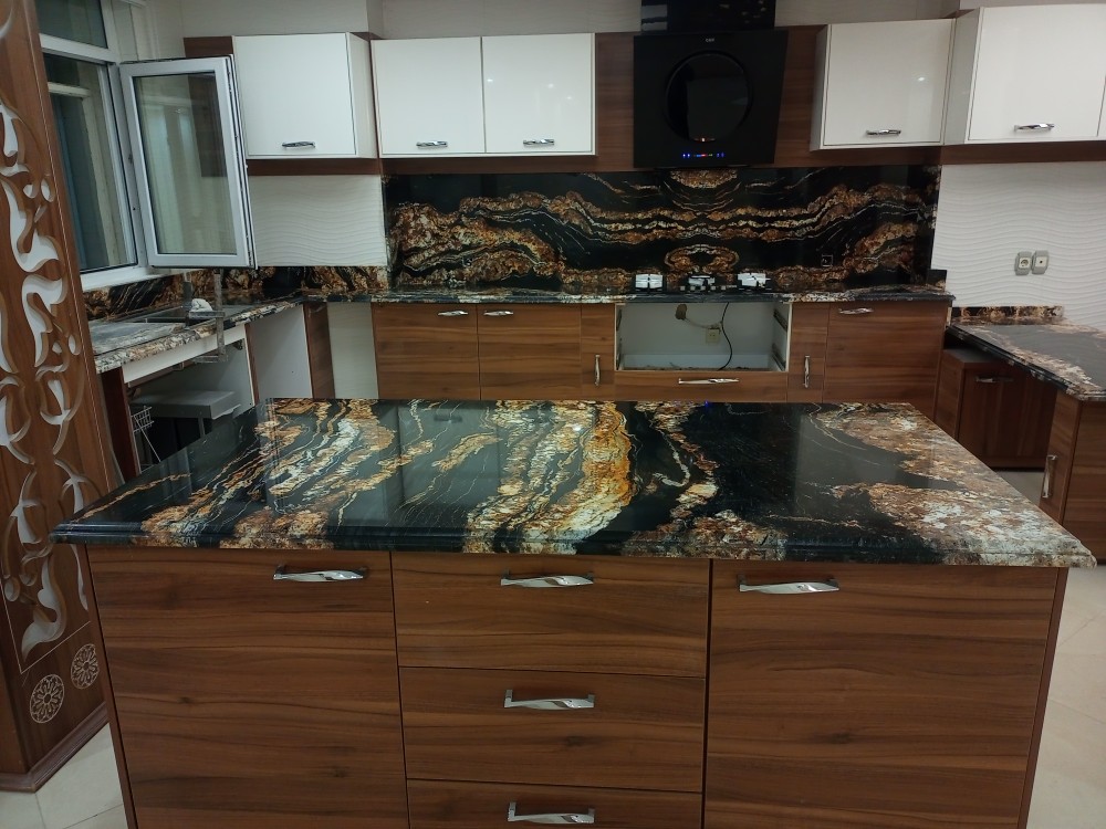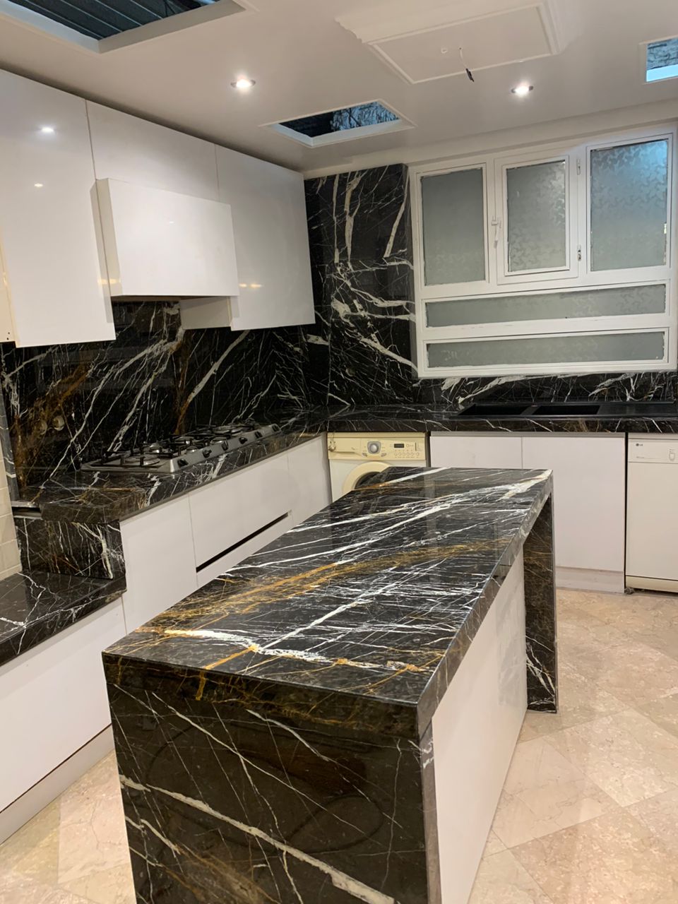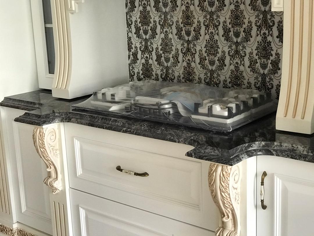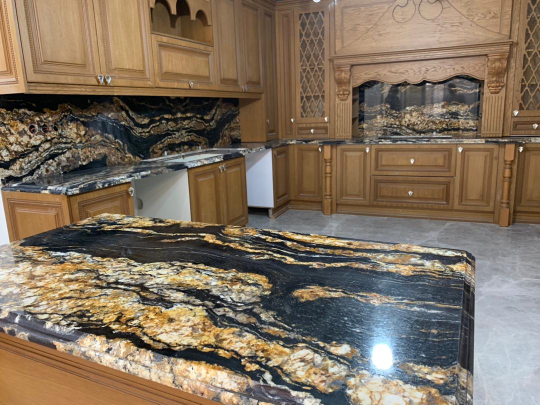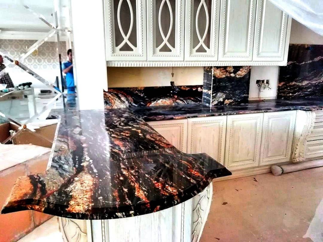 اجرا شده بصورت کلاسیک ضخامت ۴ سانت روی کانتر آشپزخانه مکان پروژه زعفرانیهزمان نصب آذر ۱۴۰۲