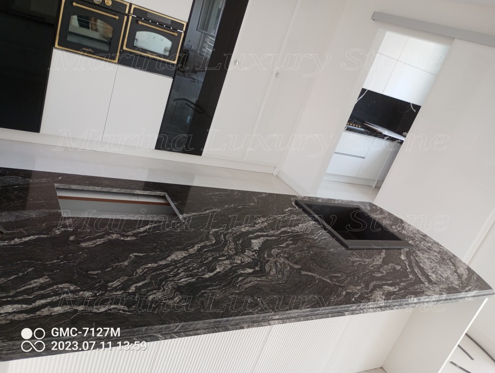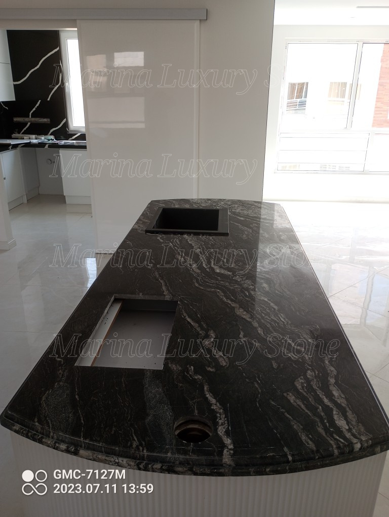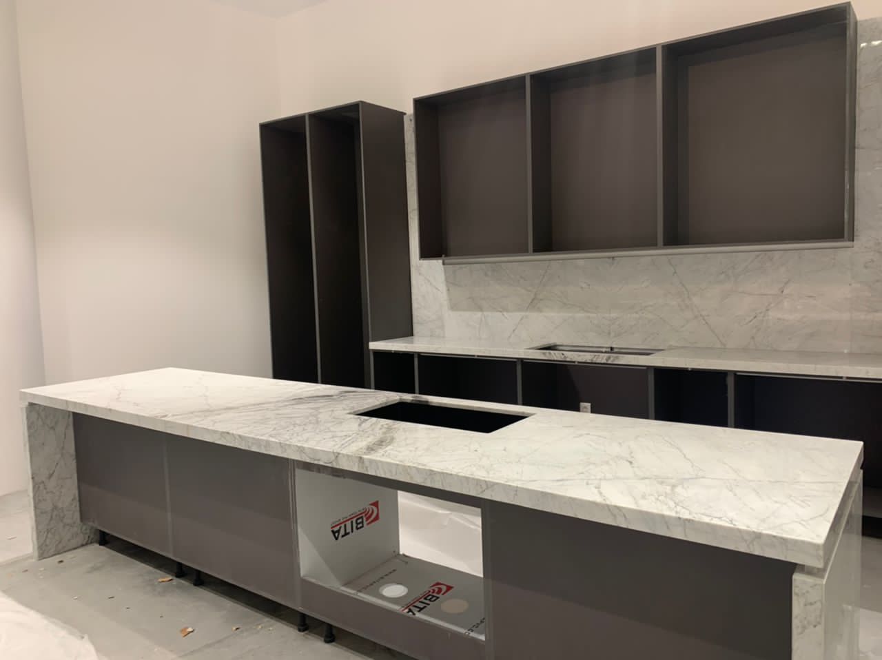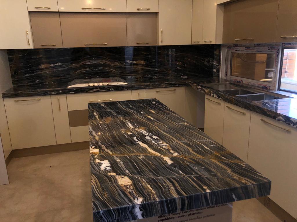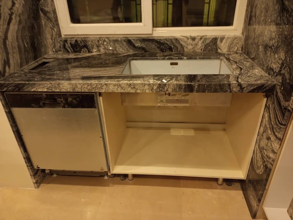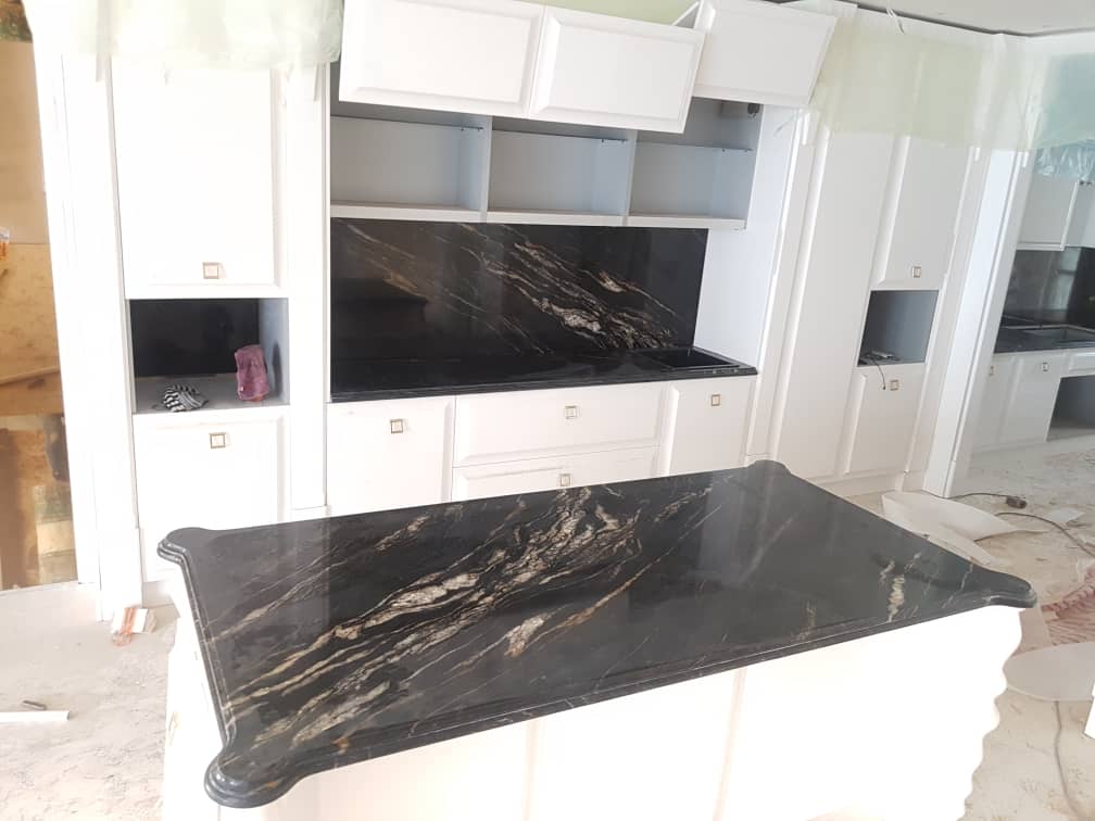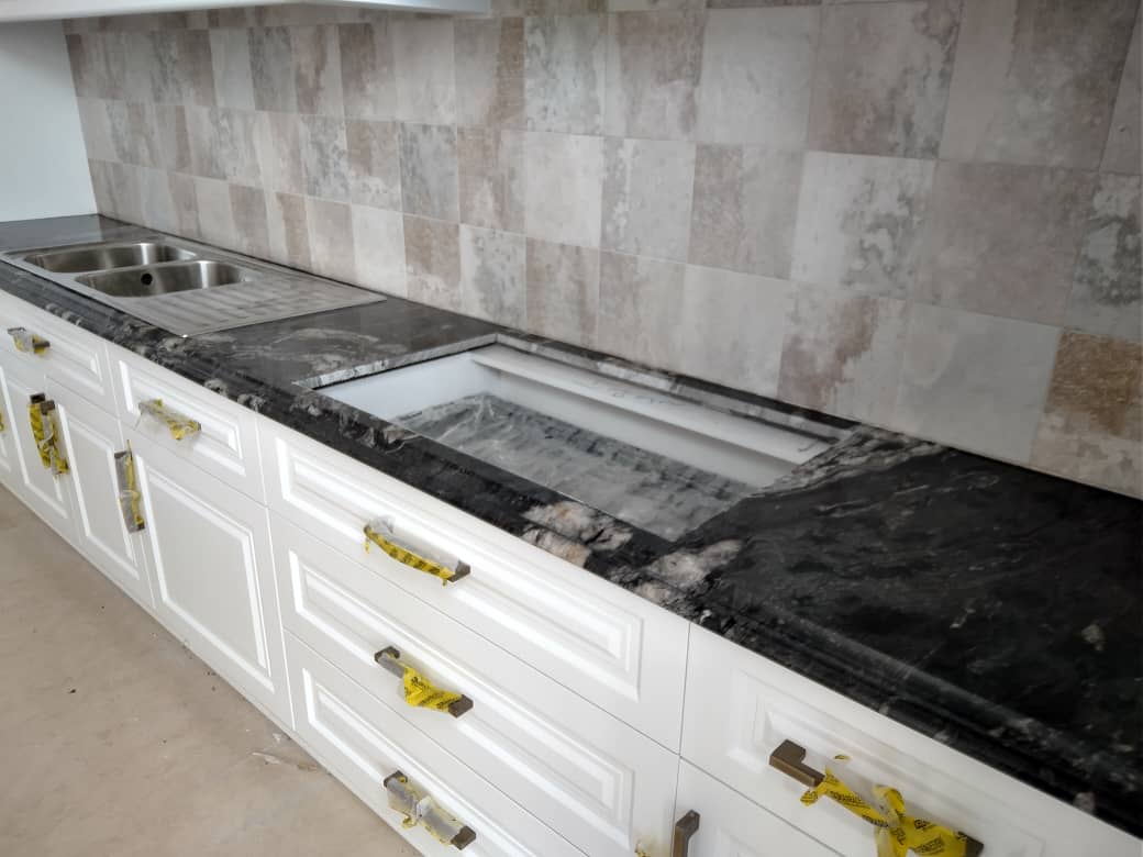 اجرا شده بصورت کلاسیک ضخامت ۴ سانت روی کانتر آشپزخانه مکان پروژه زعفرانیهزمان نصب آذر ۱۴۰۲