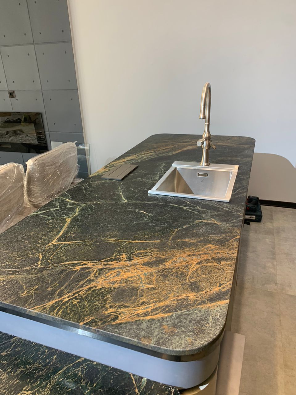 اجرا شده بصورت مدرن ابزار تیزی و نرساب روی کانتر آشپزخانه مکان پروژه خیابان ایرانزمان نصب آبان ۱۴۰۲