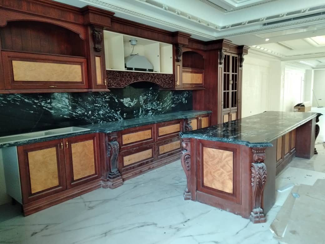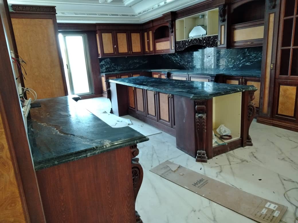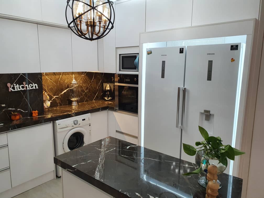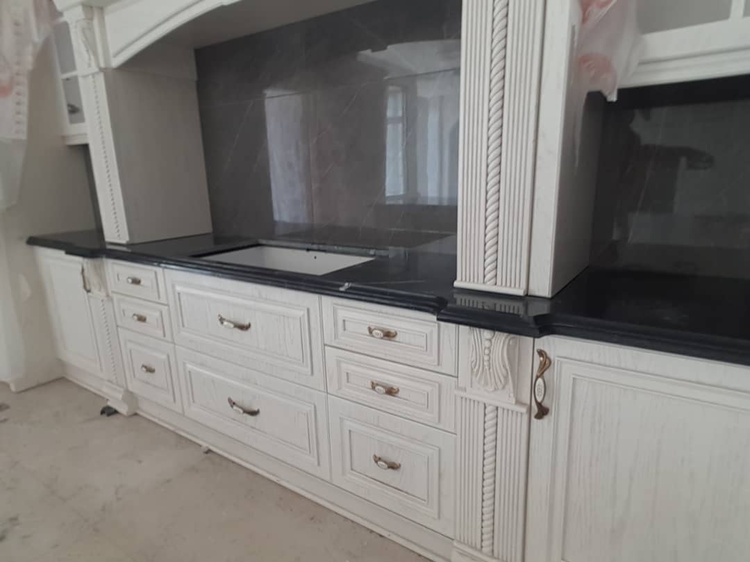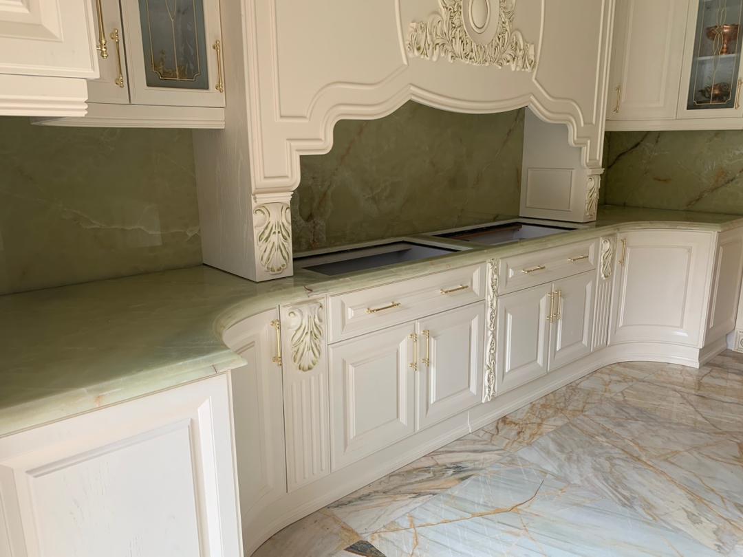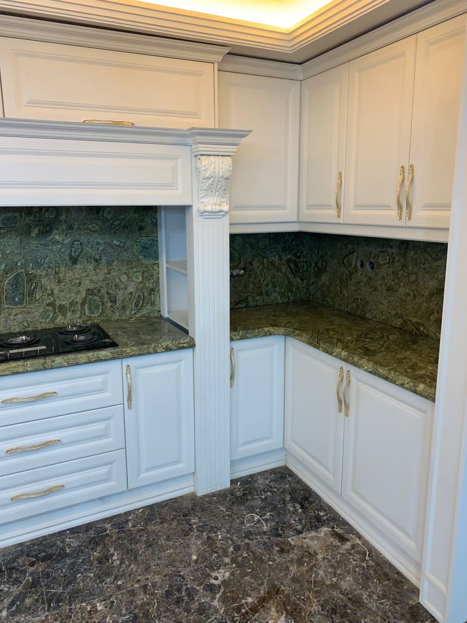 اجرا شده بصورت نئوکلاسیک ضخامت ۴ چفت و نیمگرد روی کانتر آشپزخانهمکان پروژه فردیس کرجزمان نصب مرداد ۱۴۰۰