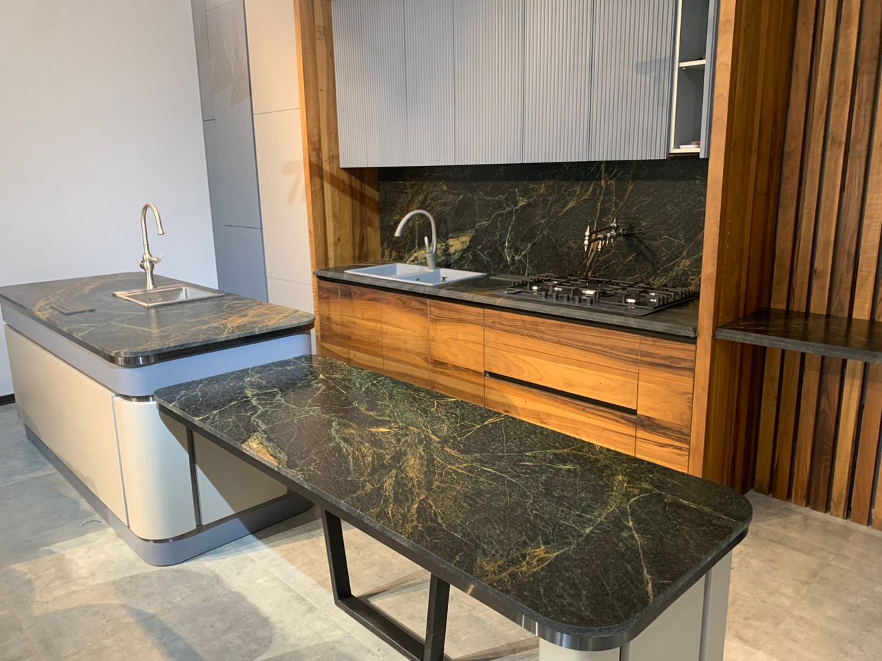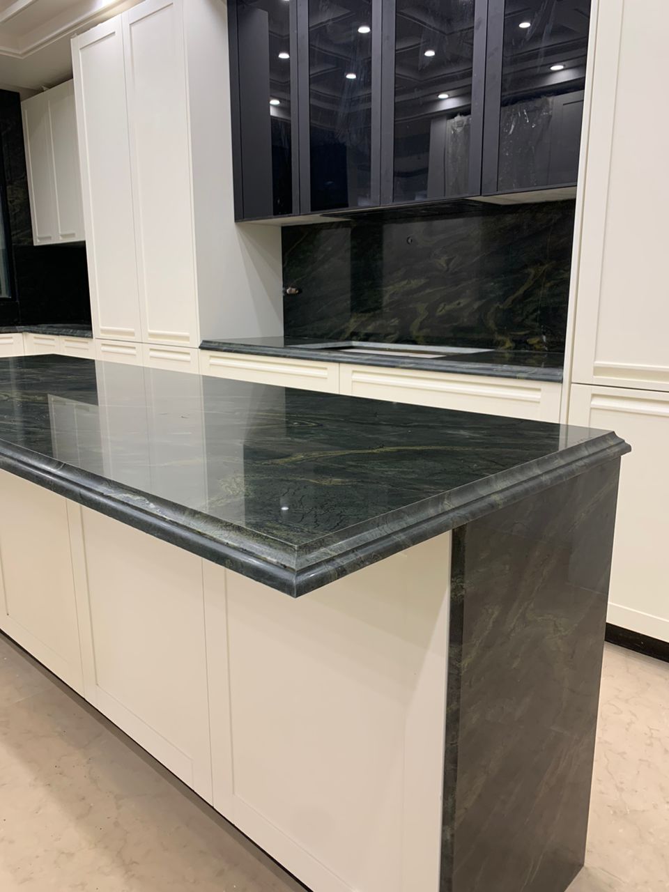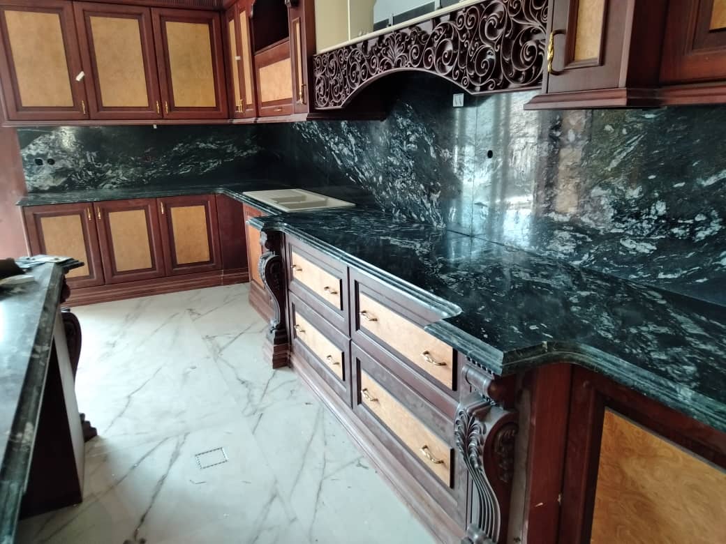 سنگ گرانیت سبز بیرجند اجرا شده بصورت کلاسیک روی کانتر آشپزخانهمکان پروژه زعفرانیهزمان نصب اسفند ۱۴۰۲