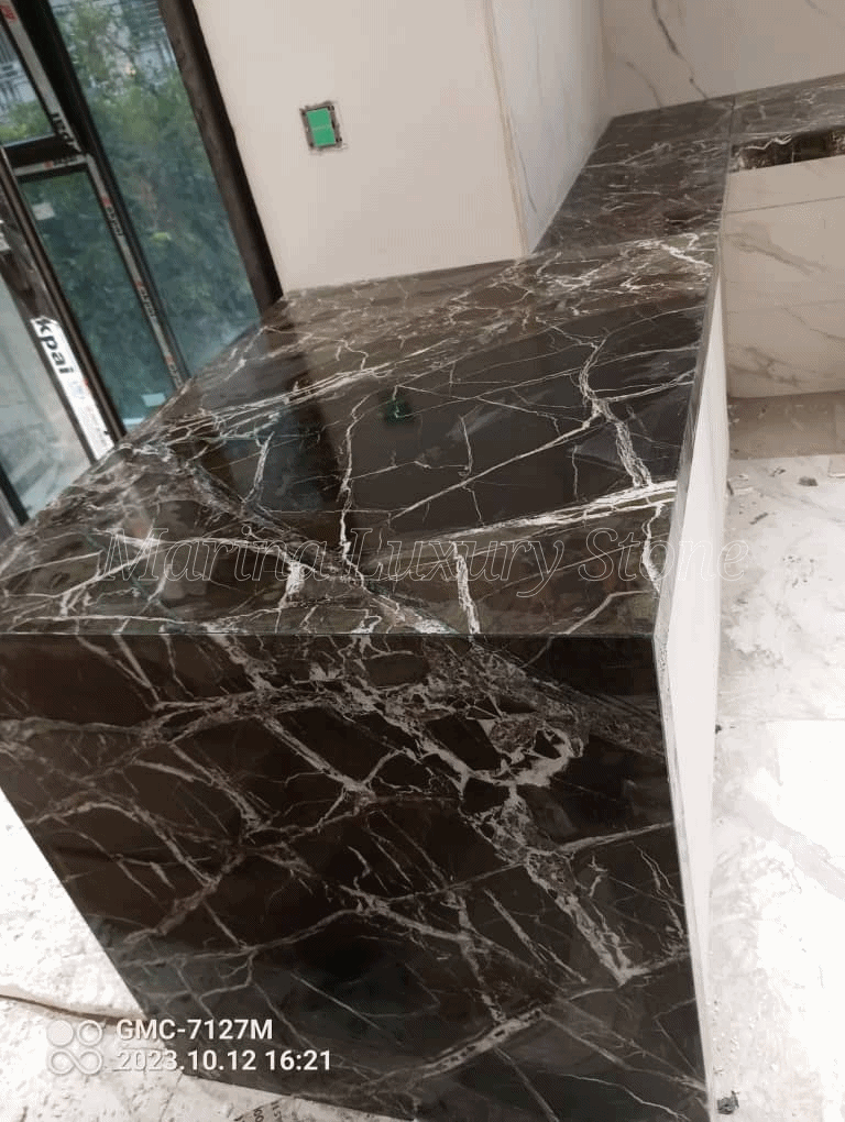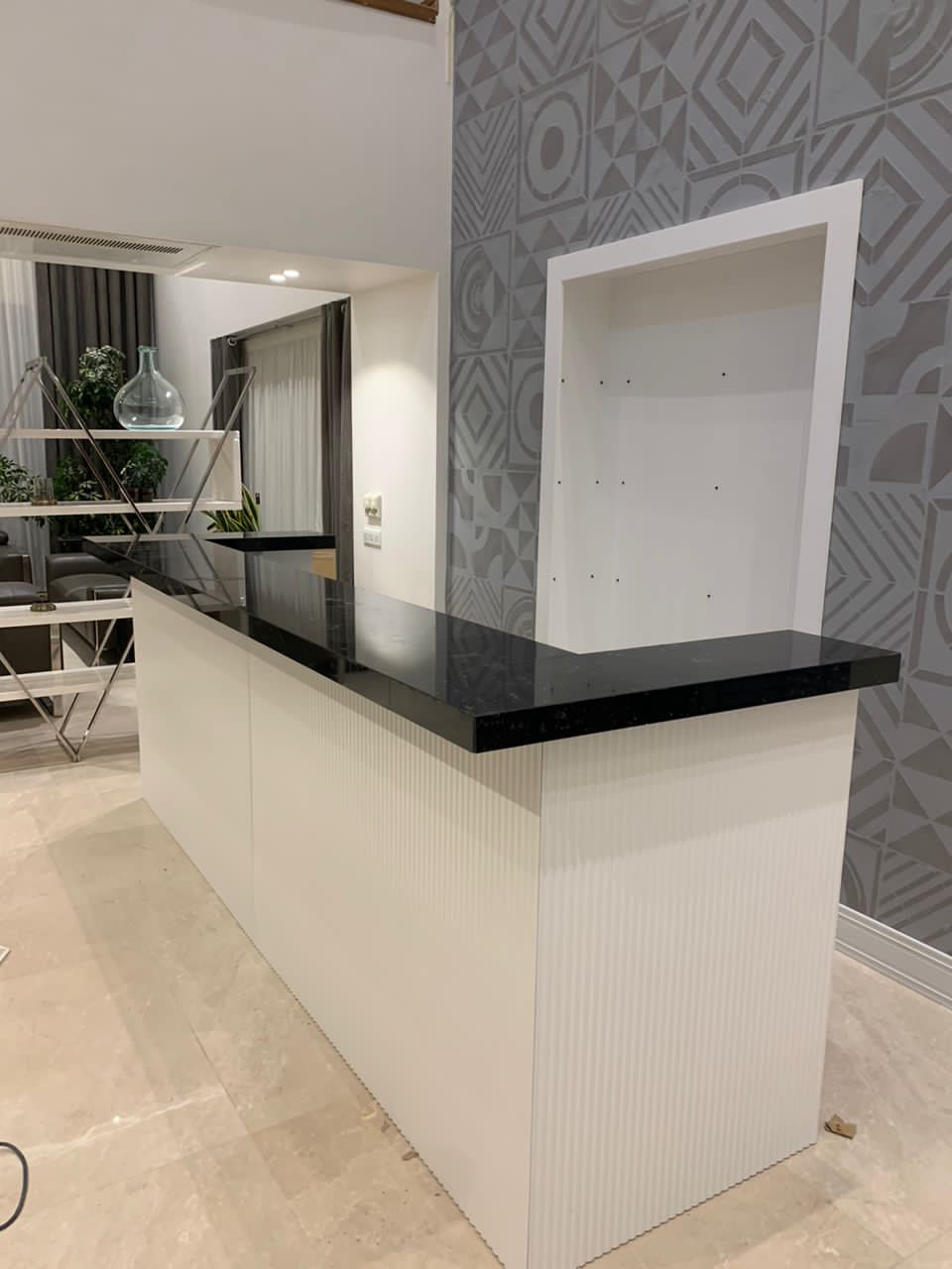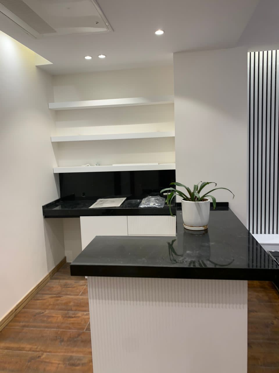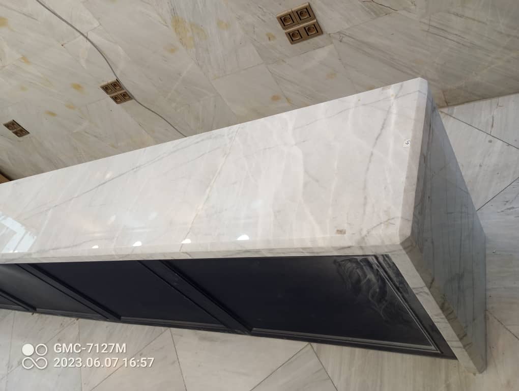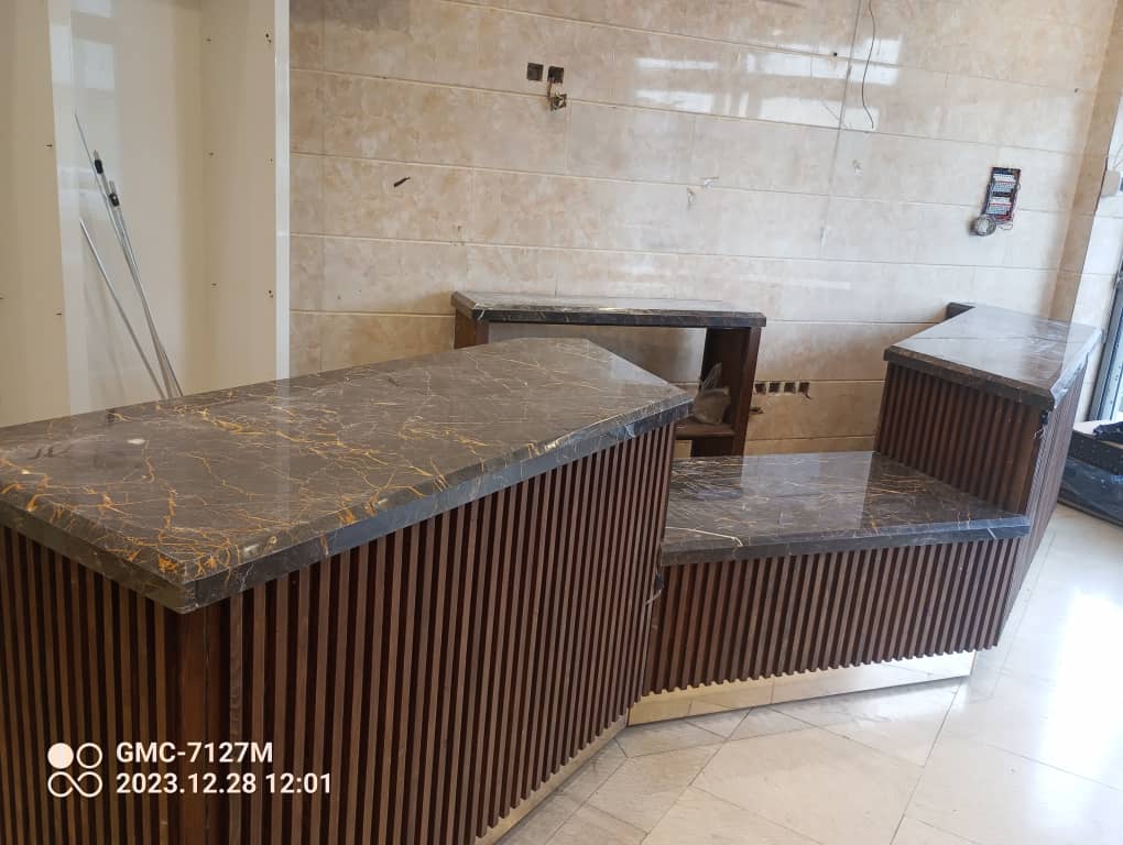 اجرا شده بصورت مدرن ضخامت ۵ سانت پخ ۳ سانت برای میز مشاوره دفتر املاکمکان پروژه گیشا خ ۱۷زمان نصب خرداد ۱۴۰۲