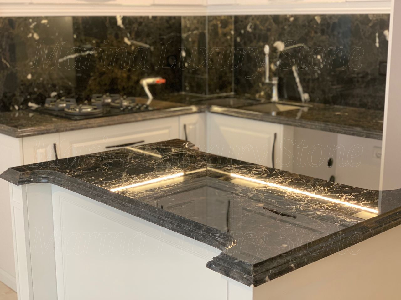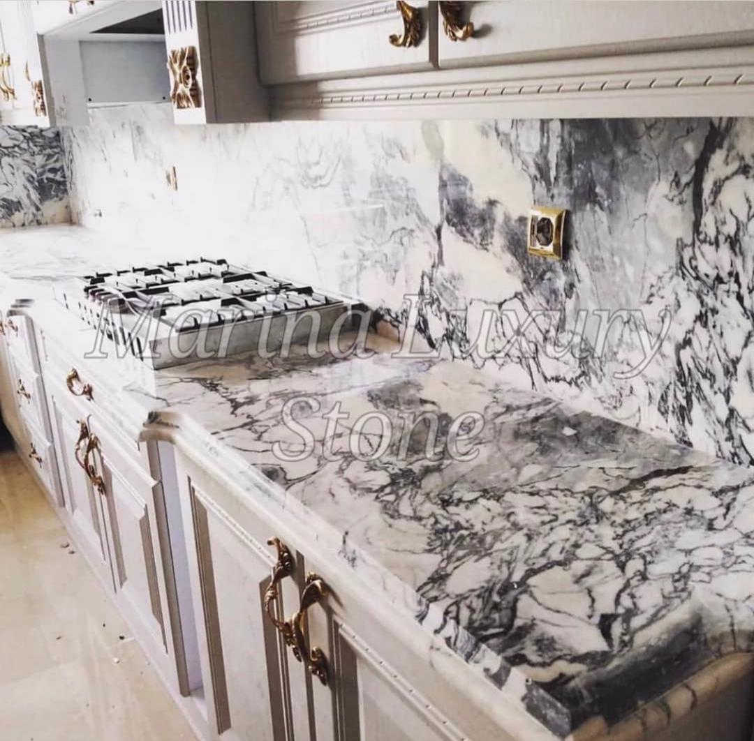 سنگ مرمریت دراگون اجرا شده بصورت کلاسیک روی کانتر آشپزخانهمکان پروژه خیابان پیروزیزمان نصب خرداد ۱۴۰۳