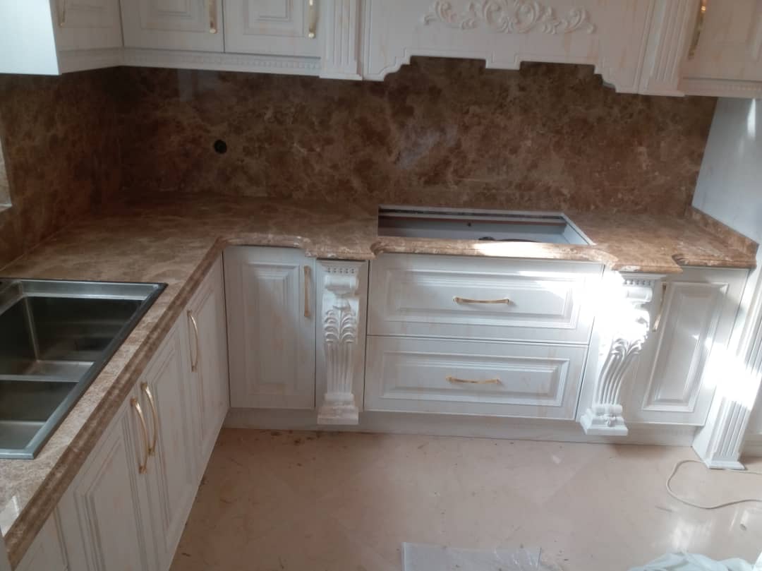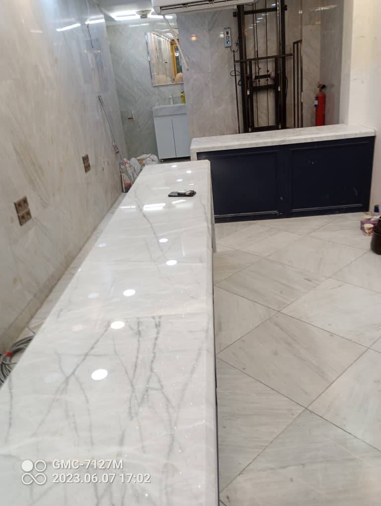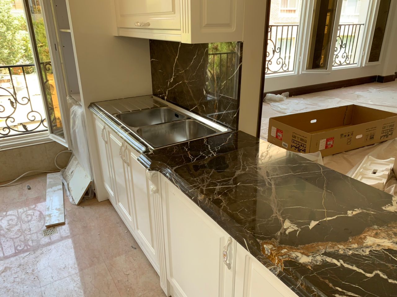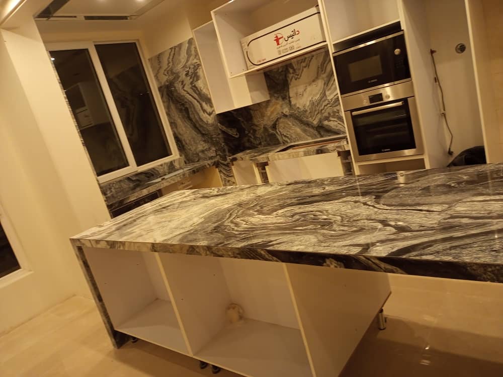 اجرا شده بصورت مدرن فارسی ضخامت ۶ روی کانتر آشپزخانهمکان پروژه عظیمیه کرجزمان نصب تیر ۱۴۰۰