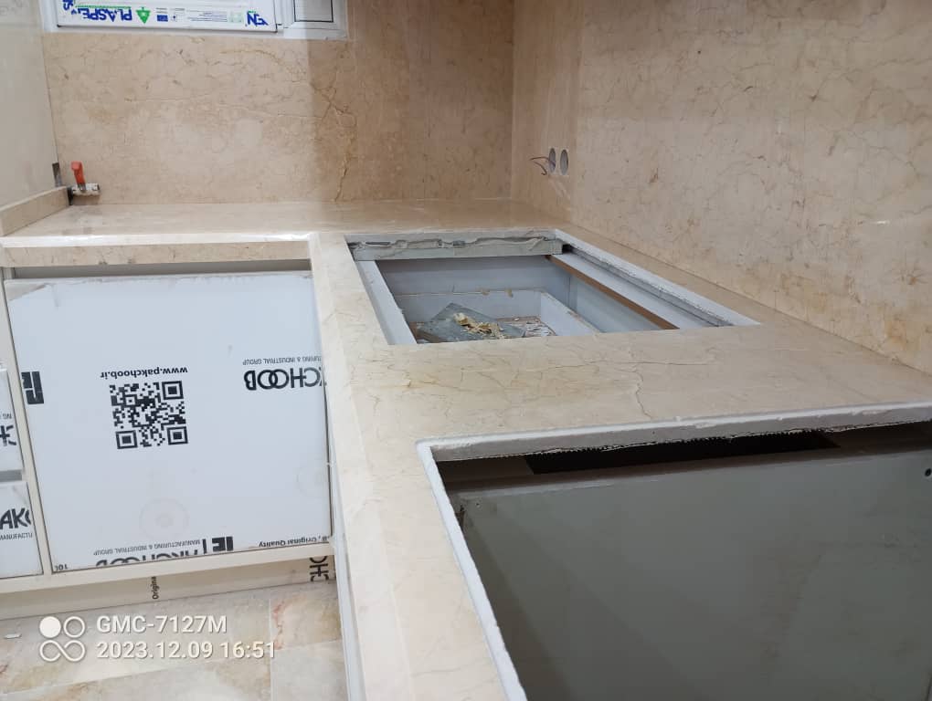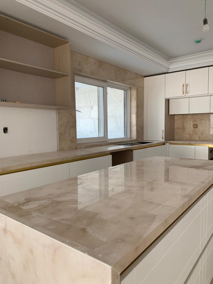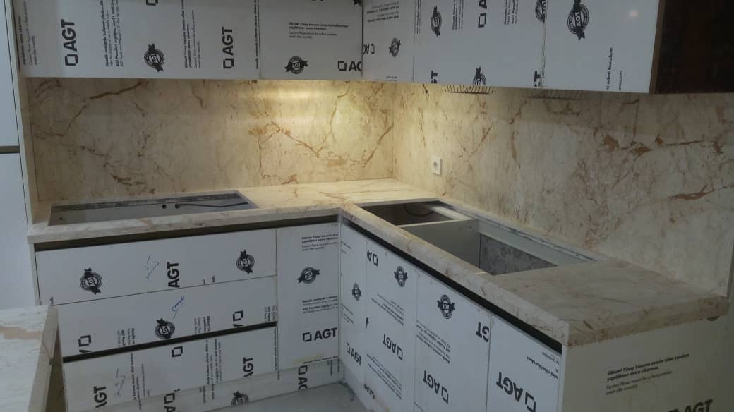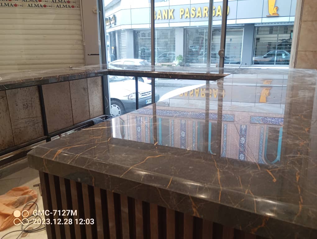 اجرا شده بصورت مدرن فارسی ضخامت ۶ روی کانتر آشپزخانهمکان پروژه عظیمیه کرجزمان نصب تیر ۱۴۰۰