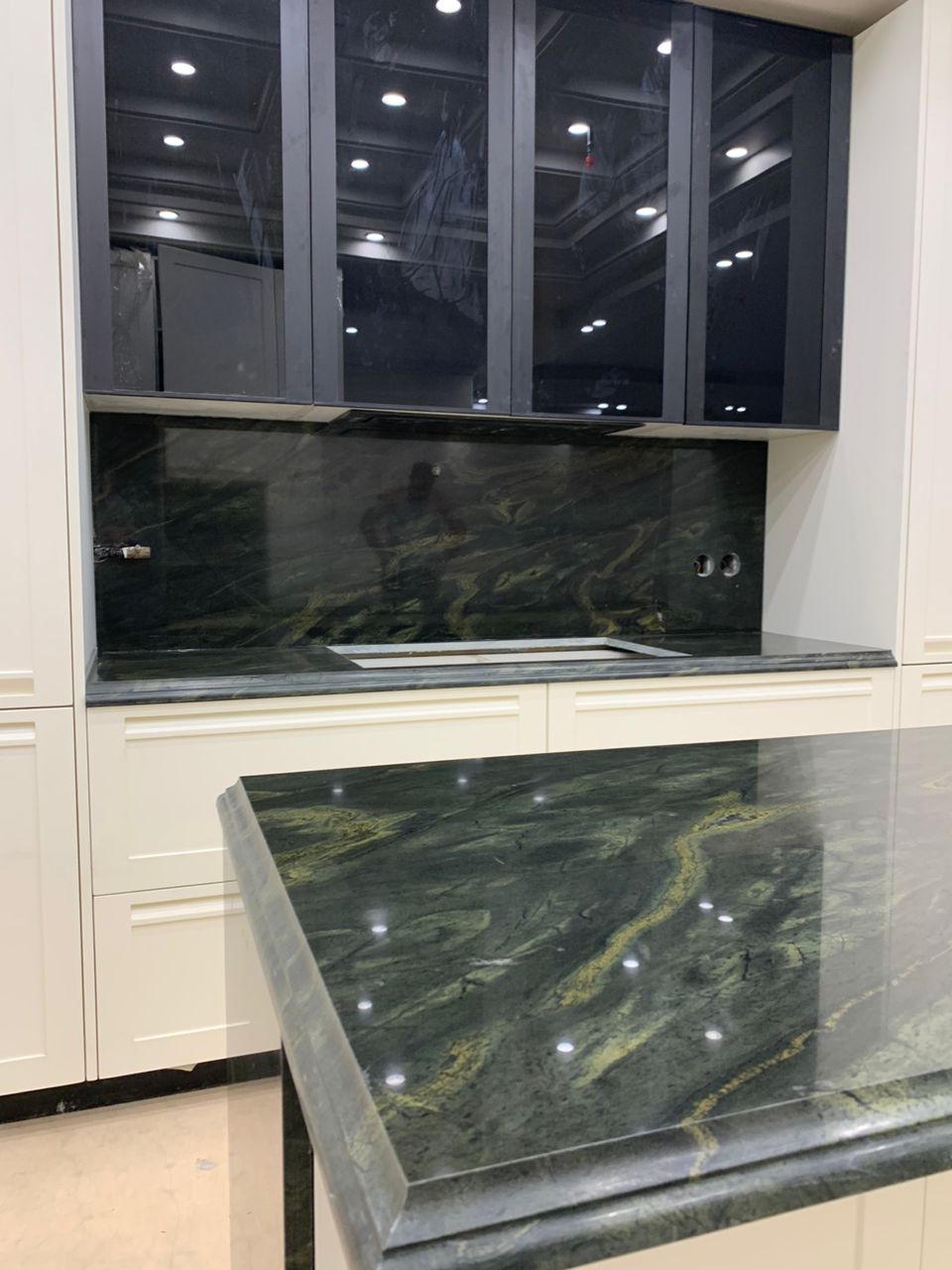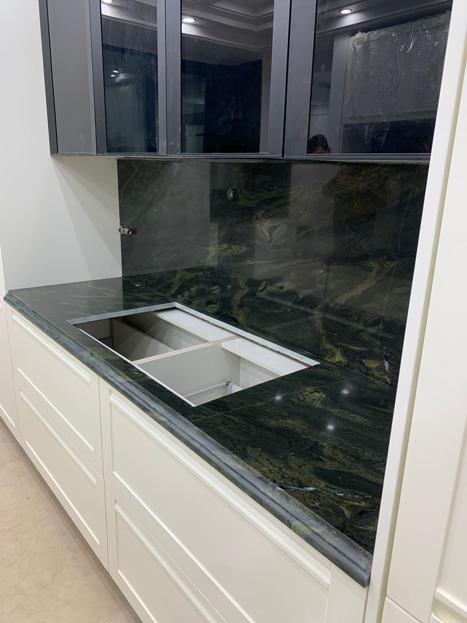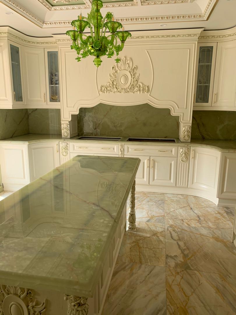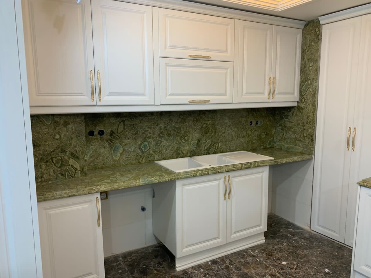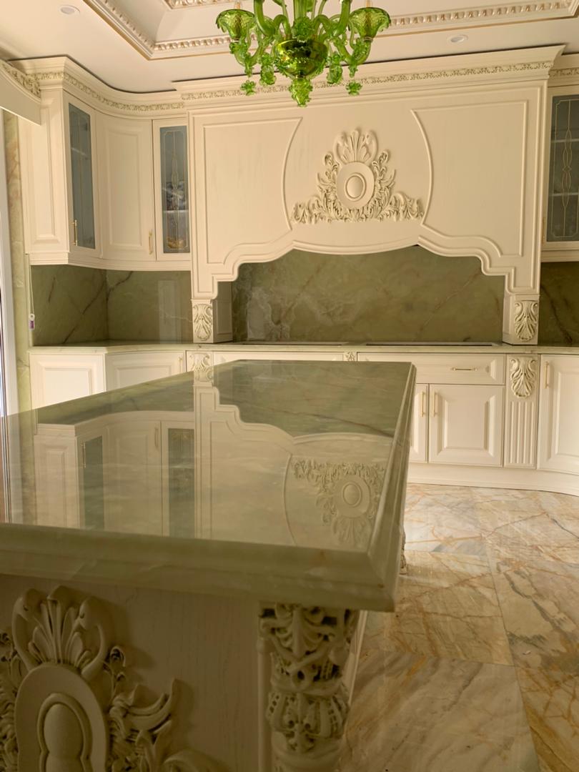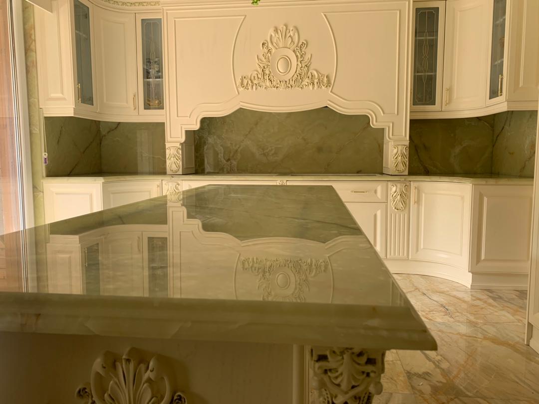 سنگ مرمر سبز اجرا شده بصورت کلاسیک روی کانتر آشپزخانهمکان پروژه ستارخانزمان نصب بهمن ۱۴۰۲