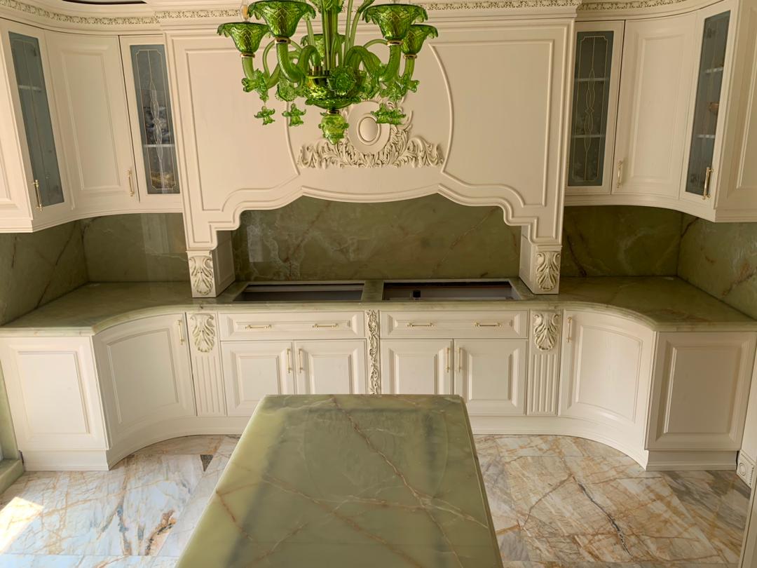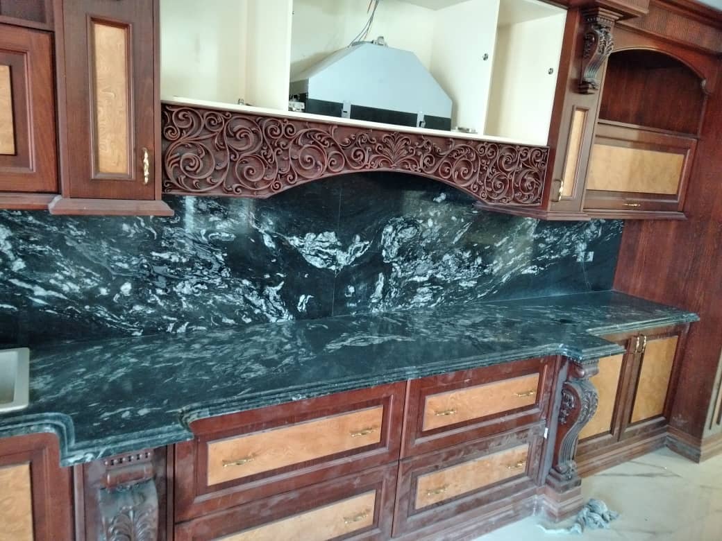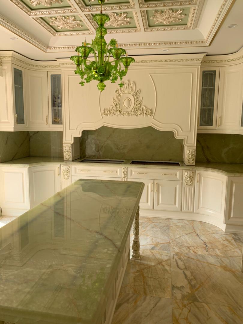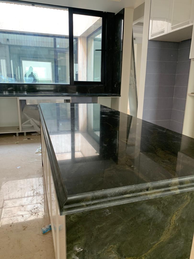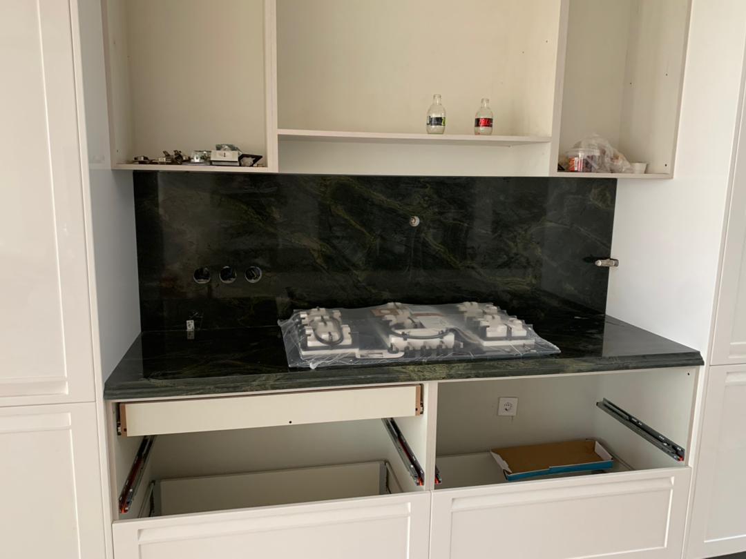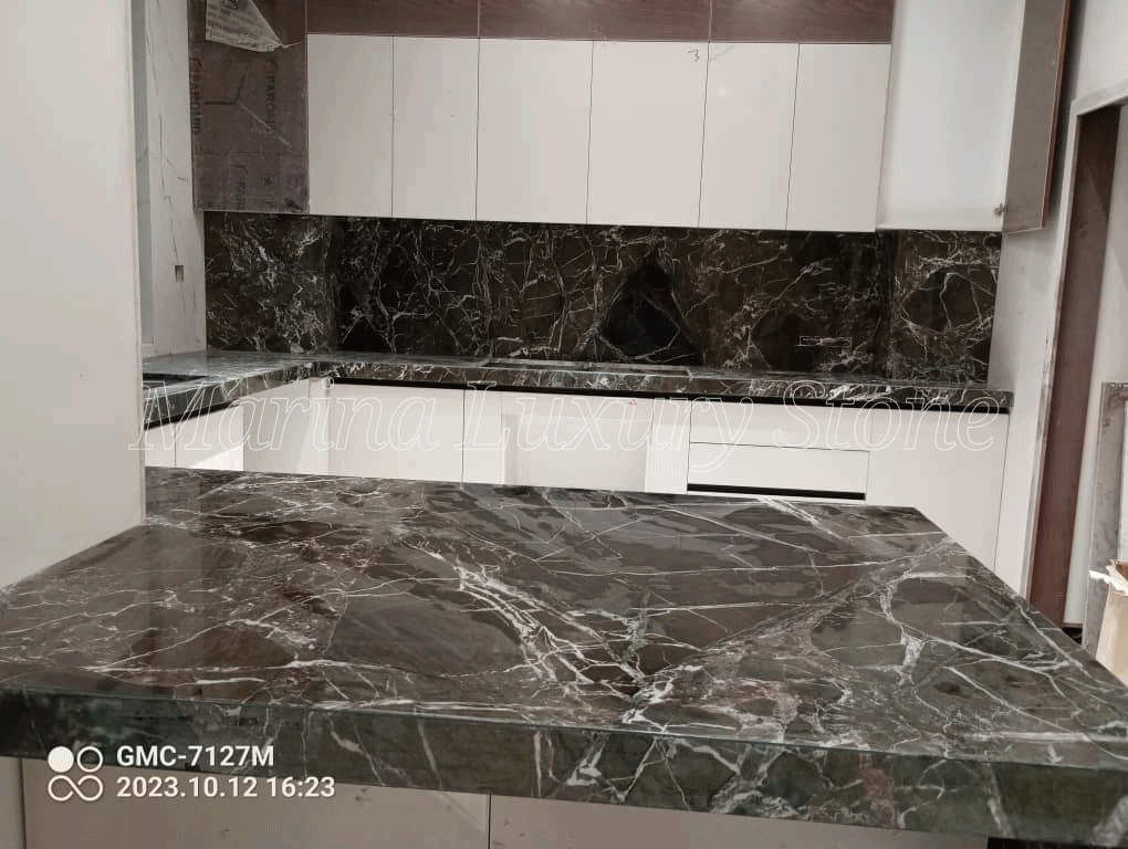 سنگ مرمر سبز اجرا شده بصورت کلاسیک روی کانتر آشپزخانهمکان پروژه ستارخانزمان نصب بهمن ۱۴۰۲