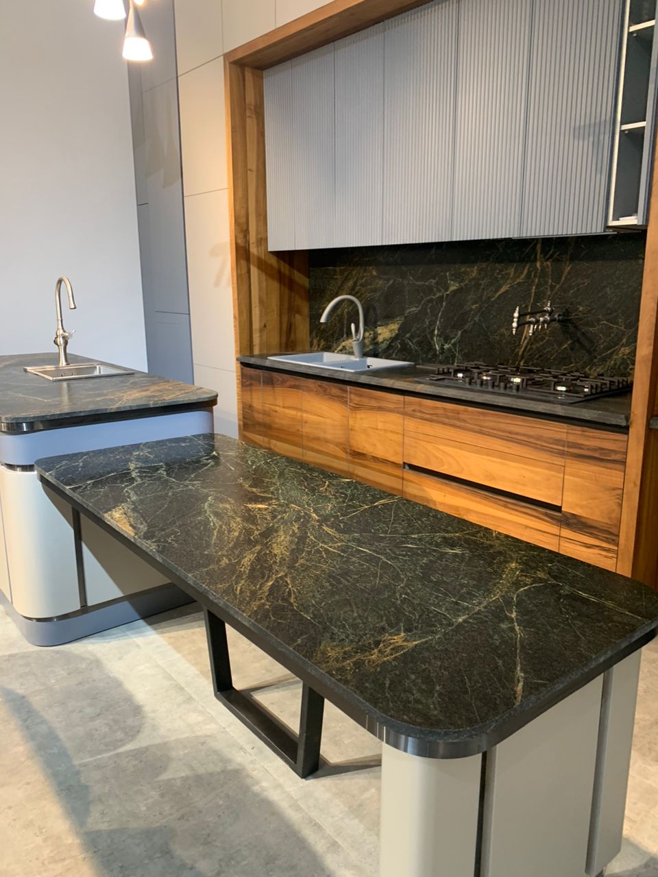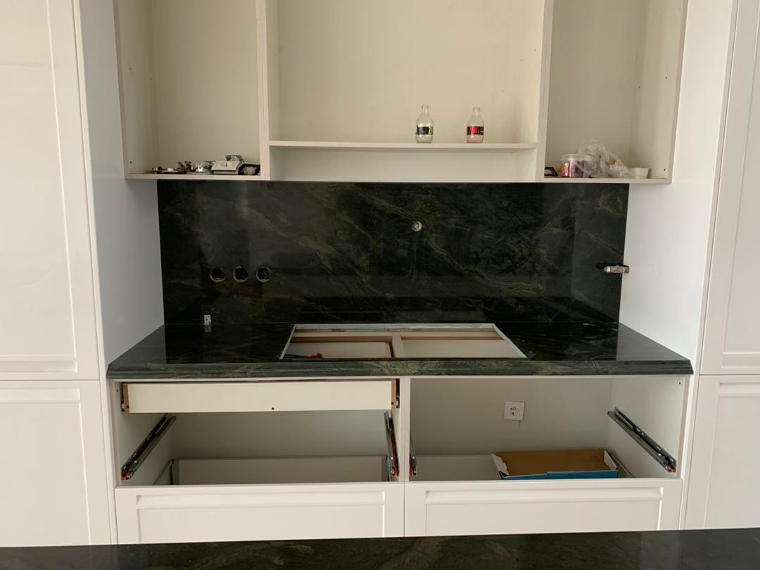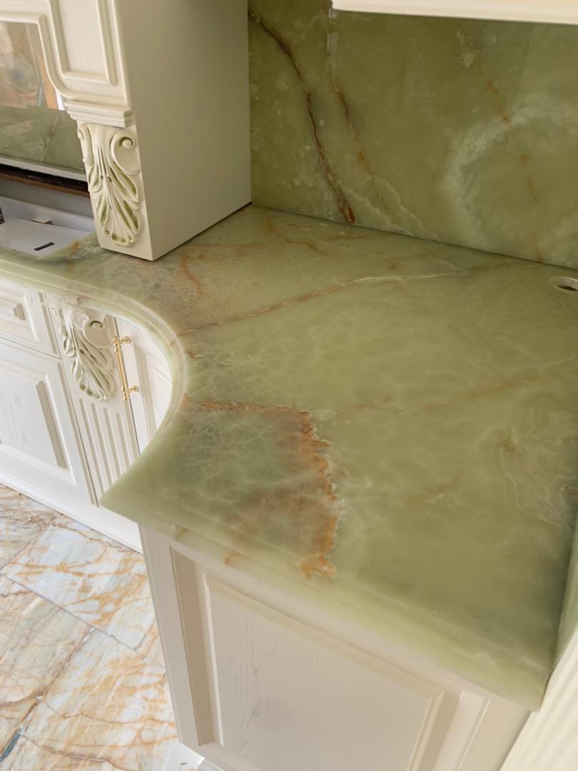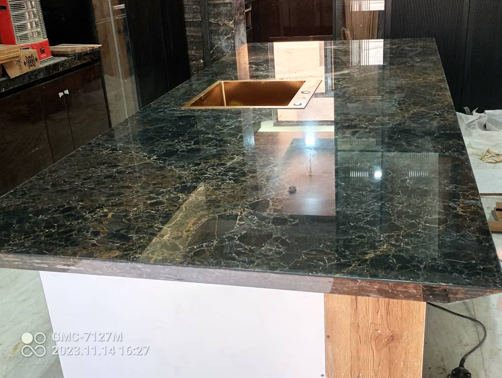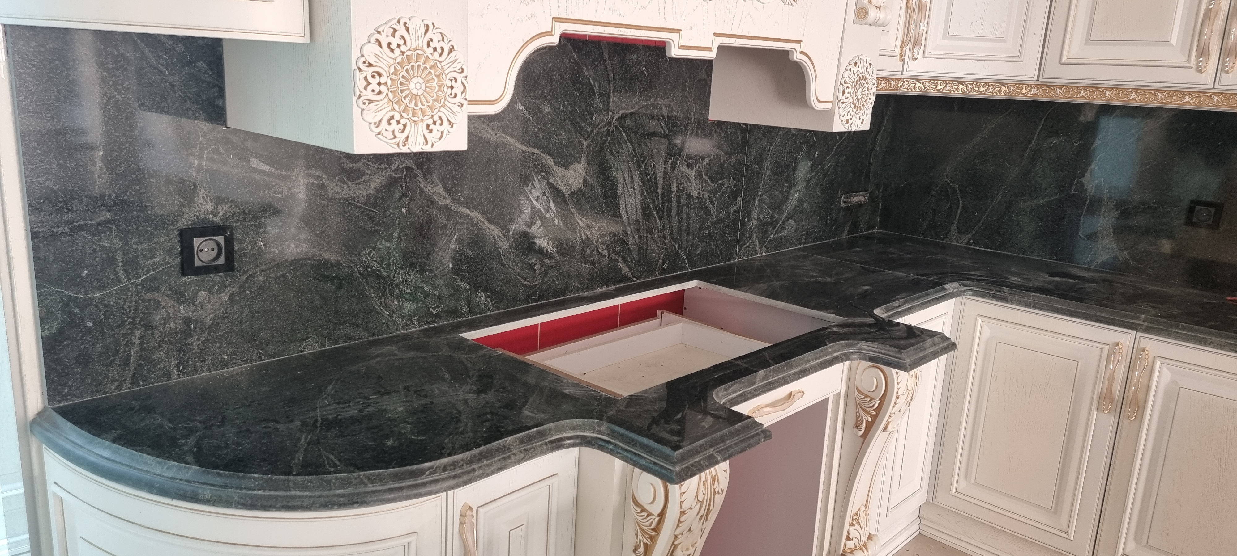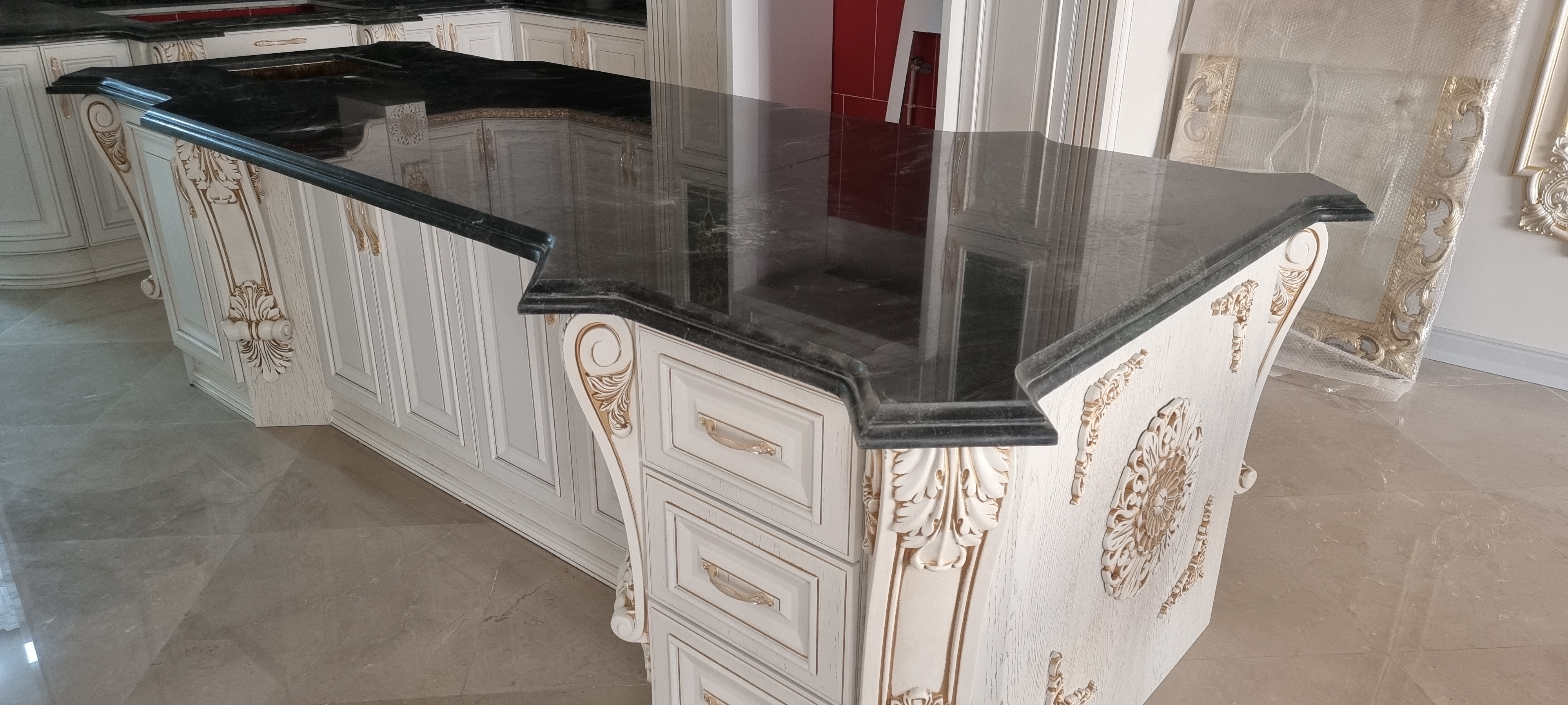 سنگ مرمر سبز اجرا شده بصورت کلاسیک روی کانتر آشپزخانهمکان پروژه ستارخانزمان نصب بهمن ۱۴۰۲
