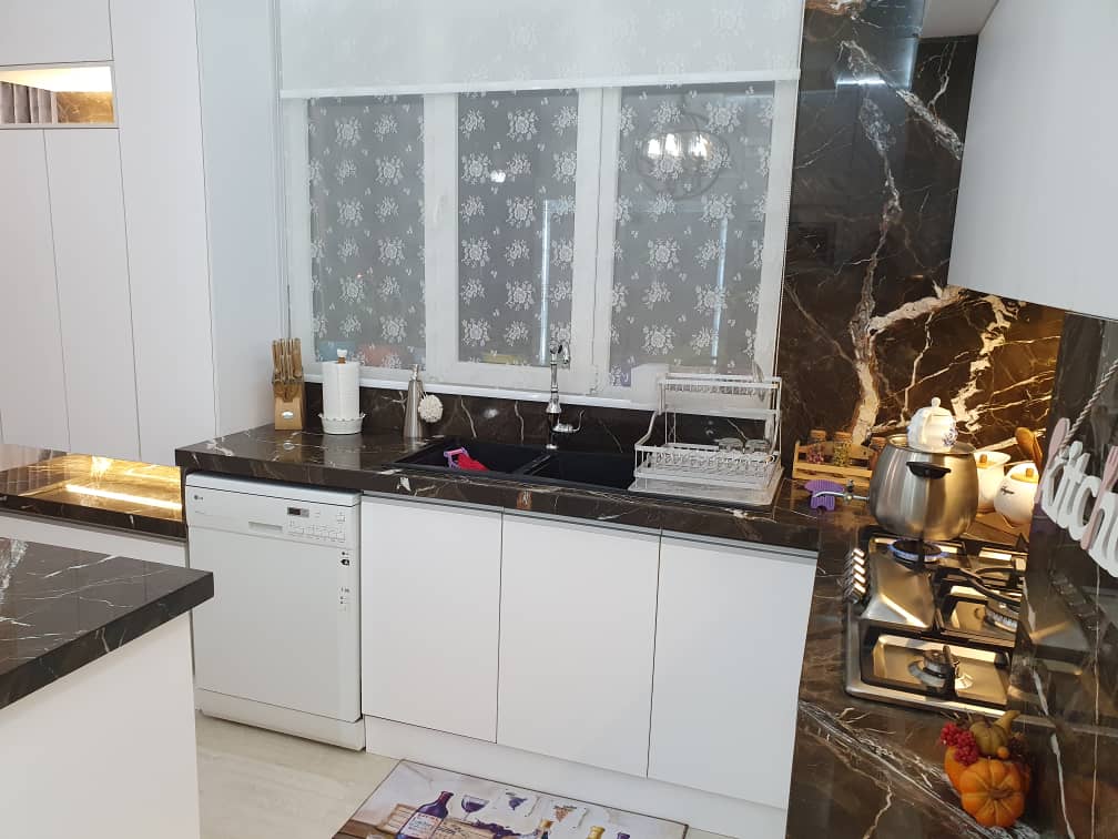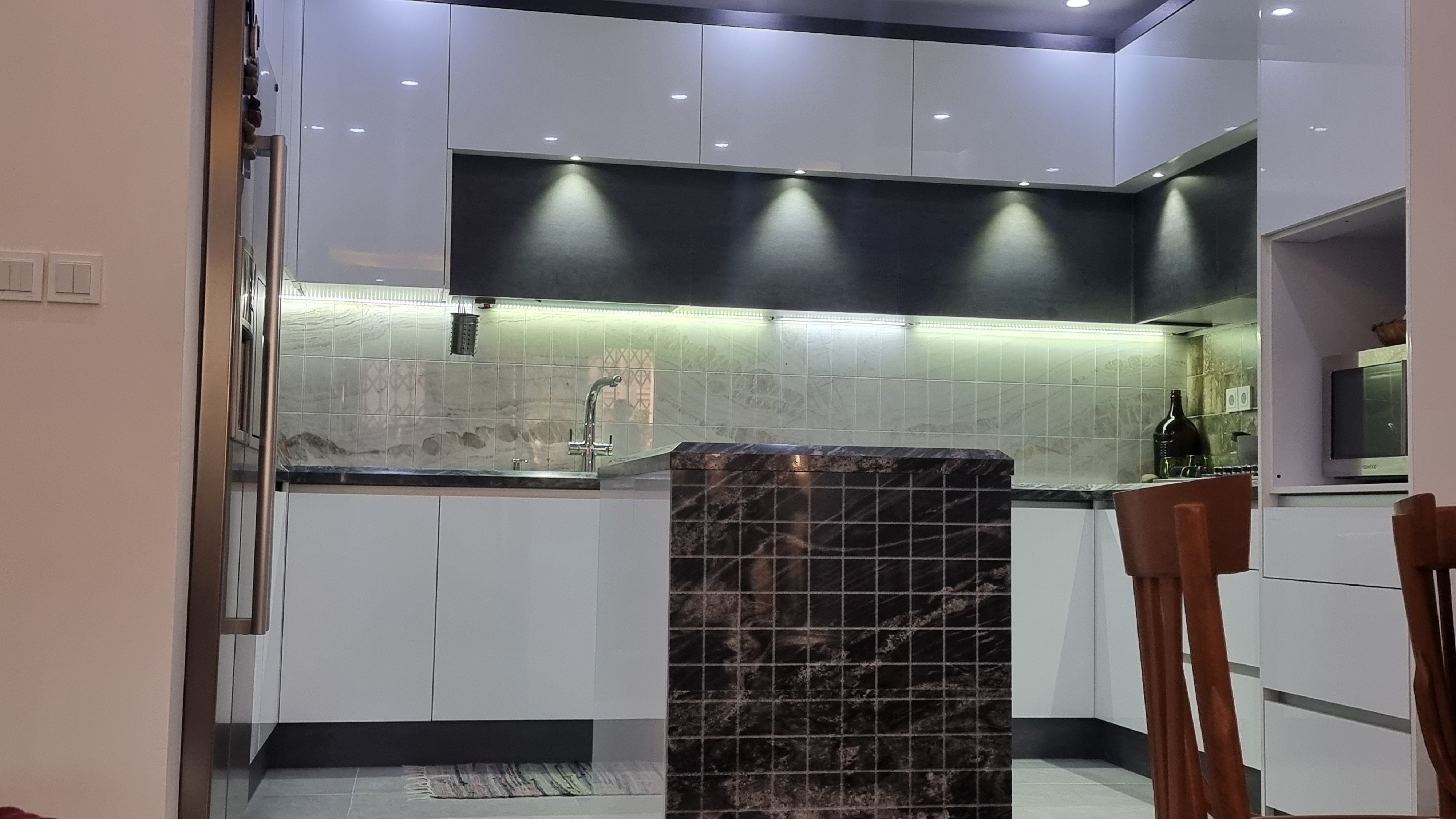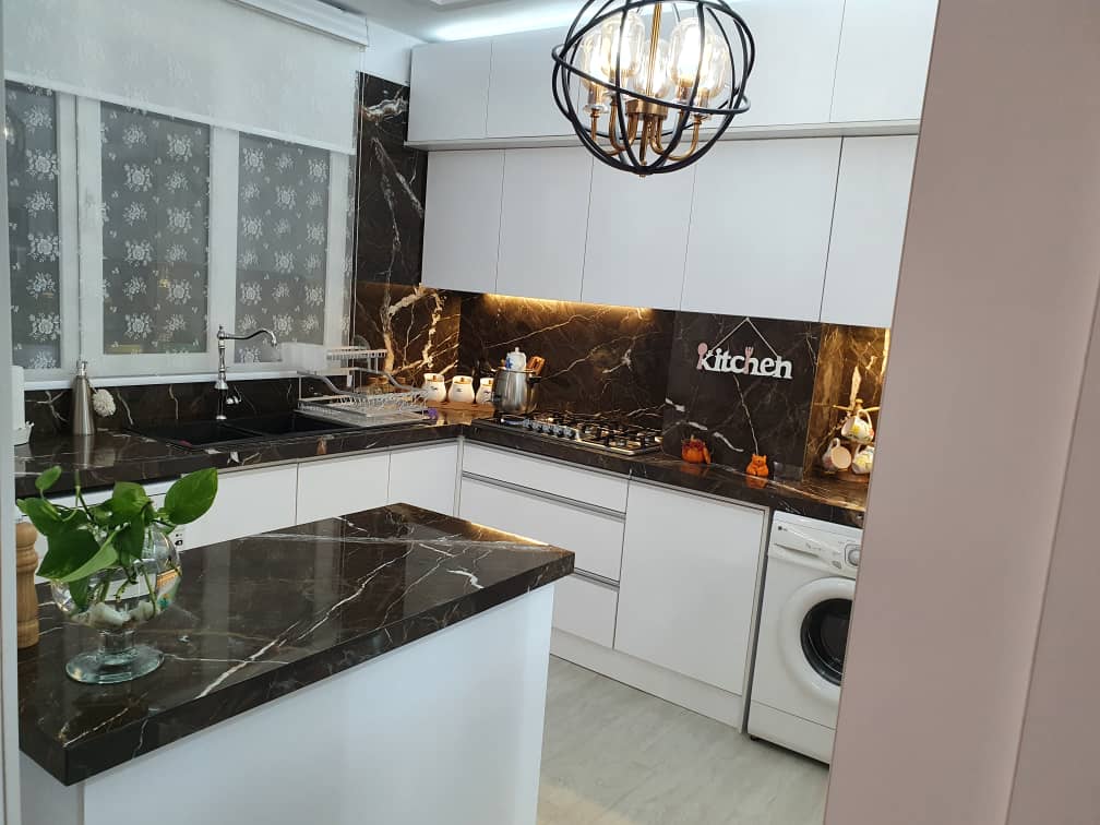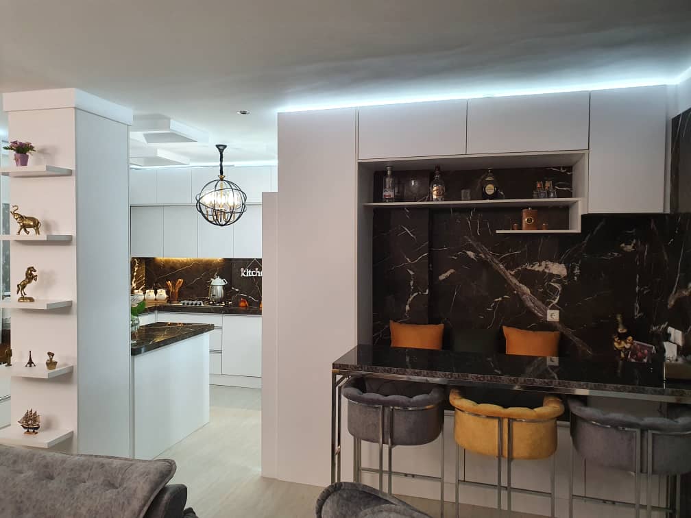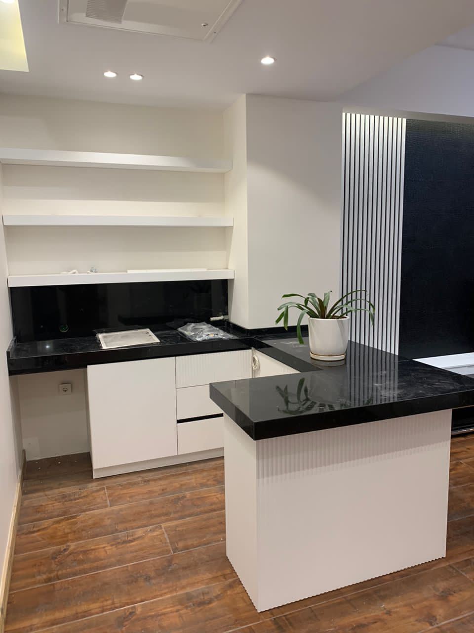 اجرا شده بصورت مدرن ابزار فارسی ۶ سانت روی کانتر آشپزخانه مکان پروژه خیابان ایرانزمان نصب آبان ۱۴۰۲
