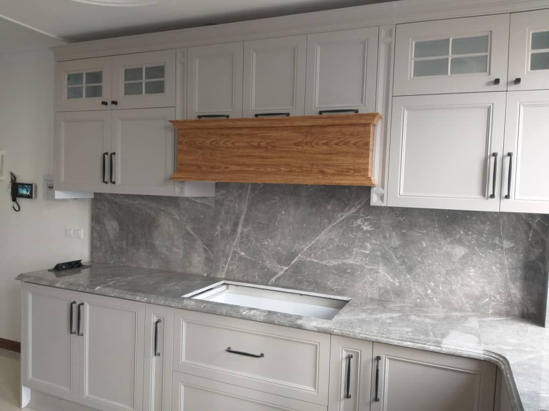 اجرا شده بصورت کلاسیک ضخامت ۴ روی کانتر آشپزخانهمکان پروژه ۲۴ متری سعادت آبادزمان نصب خرداد ۱۴۰۱